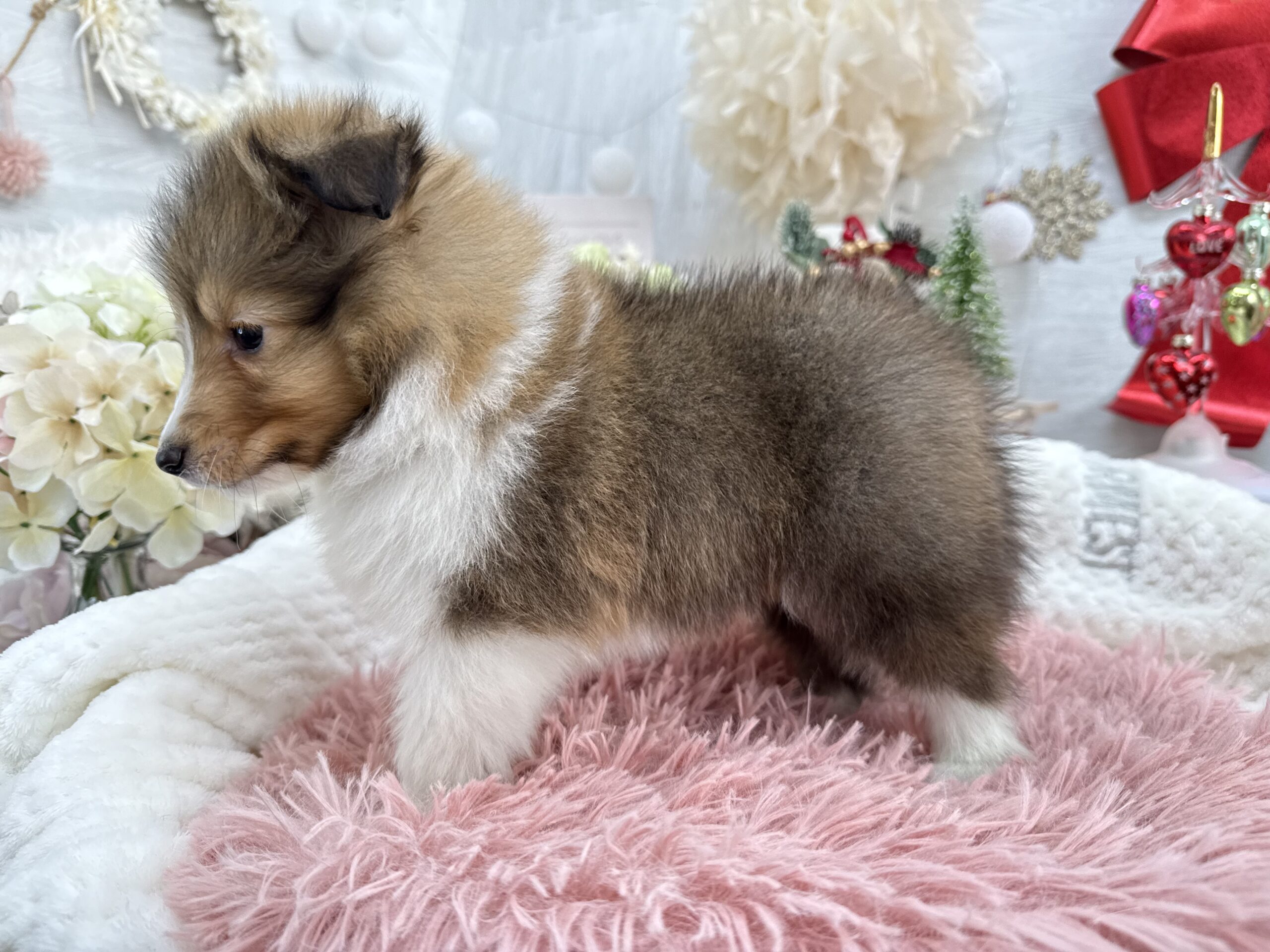 シェットランド・シープドッグ♂ シェットランドシープドッグ , 犬アイコン無し , 成約済み シェットランド・シープドッグ 生体価格(税込)270,000円 状況未接種 生年月日2025年 10月 26日 性別男の子 カラーセーブル&ホワイト 血統書あり(JKC) 出生地京都府 その他 ブレーズの入った小振りな可愛い男の子です♫健康診断結果 異常なし体重 約840g(12月5日現在)<当犬舎のこだわり>生まれた仔犬達はお母さんの愛情いっぱいもらいながら衛生管理整えた環境で育てています。健康で可愛い仔犬のブリーディングを心がけております。当犬舎では可愛くて健康な子犬を作出しながら、安心・親切・丁寧をもっとうとして飼い主様お1人お1人様に対応をさせて頂いております。<購入予約について>予約金をいただいた時点で正式な予約とし、他のお客様からのお問い合わせの受付をストップさせていただきます。予約金は、ワンちゃんの生体価格の30%となります。また、お預かりした予約金は内金として充当します。<ご予約後のキャンセルについて>子犬・子猫をご予約後、お客様都合で子犬・子猫購入をキャンセルされた場合には、予約金の返金は致しかねますので、ご注意ください。<引渡し方法>店頭での手渡しこの場合、送料はかかりません。お迎えにかかる総額費用の内訳は、生体価格+ワクチン代(子犬6,600円、子猫4,400円)+子犬(子猫)フードとなります。店頭での見学後、後日お届けこの場合、お届け場所に応じた出張料が別途必要です。お迎えにかかる総額費用の内訳は、生体価格+ワクチン代+子犬(子猫)フード+出張料となります。※お届けでお迎えいただく場合には、お届けする前に必ず一度、店頭での現物確認、及び対面説明を受けていただく必要があります。<引き渡し時期について>生後60日前後を基本としておりますが、子犬・子猫の健康状態により前後いたします。▼保障制度▼お客様に販売した日より30日の生命保障をいたします。保障内容1.譲渡日から30日以内に当該保証対象犬が伝染病による死亡をした場合30日以内に当方が認めた同じクラスの同種の犬を無償で提供いたします。2.現金をお返しする場合、生体購入金額の50%となります。下記の場合は保障されません。1.飼育者の重大な過失に基づく死亡2.飼育者の故意による死亡3.伝染病予防ワクチンの接種を受けずに死亡4.獣医の治療を受けなかった場合の死亡5.飼育者以外からの保障請求6.事故による死亡・逃亡・及び盗難7.保障請求に関して虚偽の申告があった時8.死亡の場合は医師の死亡証明がない時※子犬の成長過程で生じた毛色の変化、歯の噛み合わせ、サイズ、陰睾丸など子犬の時点では不可能なため、クレーム、返品はお受けできませんのでご了承下さい。 お問い合わせ このページを印刷する