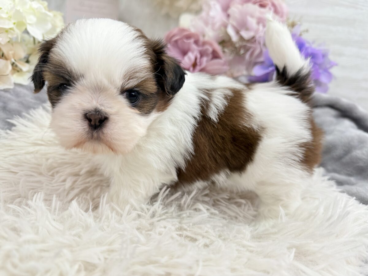 シーズー シーズー , 犬アイコン無し シーズー 生体価格(税込)270,000円 状況未接種 生年月日2025年 12月 23日 性別女の子 カラーホワイト&ゴールド 血統書あり(JKC) 出生地京都府 その他 たくさんのワンちゃんの中から、この子をご覧いただきありがとうございます☆1月26日撮影当犬舎自慢の可愛い両親から生まれました。お目目が大きくて可愛い女の子です♫柄も綺麗に入っております。この子も将来可愛く成長してくれるでしょう^ ^両親遺伝子済み プレカリクレイン欠乏症 クリア★お母さん 毛色:ゴールド&ホワイト 体重 約4.2kg★お父さん 毛色ゴールド&ホワイト 体重 約4.5kg生まれた仔犬達はお母さんの愛情いっぱいもらいながら衛生管理整えた環境で育てています。<当犬舎のこだわり>健康で可愛い仔犬のブリーディングを心がけております。当犬舎では可愛くて健康な子犬を作出しながら、安心・親切・丁寧をもっとうとして飼い主様お1人お1人様に対応をさせて頂いております。お迎えの際、サービスでシャンプーをしてお引き渡しさせていただきます♫また、全てのワンちゃんに30日間の生命保証が付いております!<お問い合わせについて>当犬舎はブリーディング以外にも業務がございますので、早急にお返事ができない場合もございます。24時間以内にはお返事させていただきますのでご了承をお願いいたします。<ご見学について>当犬舎で直接ご見学、LINEのビデオ通話を用いてオンライン見学も対応させていただいております。当犬舎では見学順ではなく、購入予約順でお譲りしています。もしも他のお客様から先に購入予約があった場合、ご紹介ができなくなりますので、あらかじめご了承ください。<購入予約について>予約金をいただいた時点で正式な予約とし、他のお客様からのお問い合わせの受付をストップさせていただきます。予約金は、ワンちゃんの生体価格の30%となります。*お客様都合によるキャンセルの場合は返金できませんのでご了承をお願いいたします。 お問い合わせ このページを印刷する