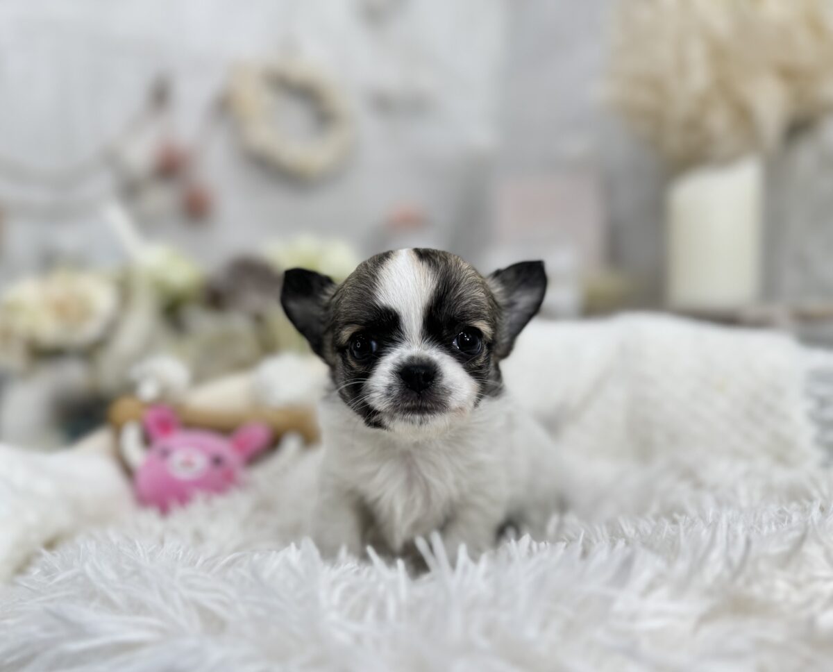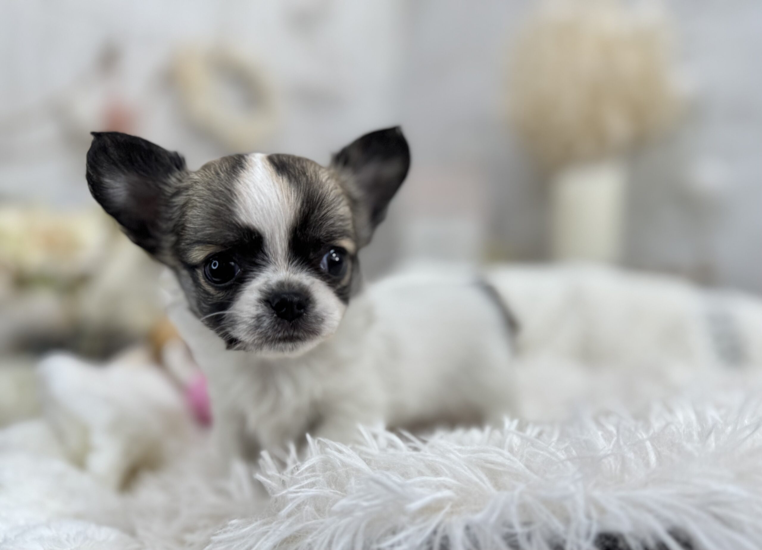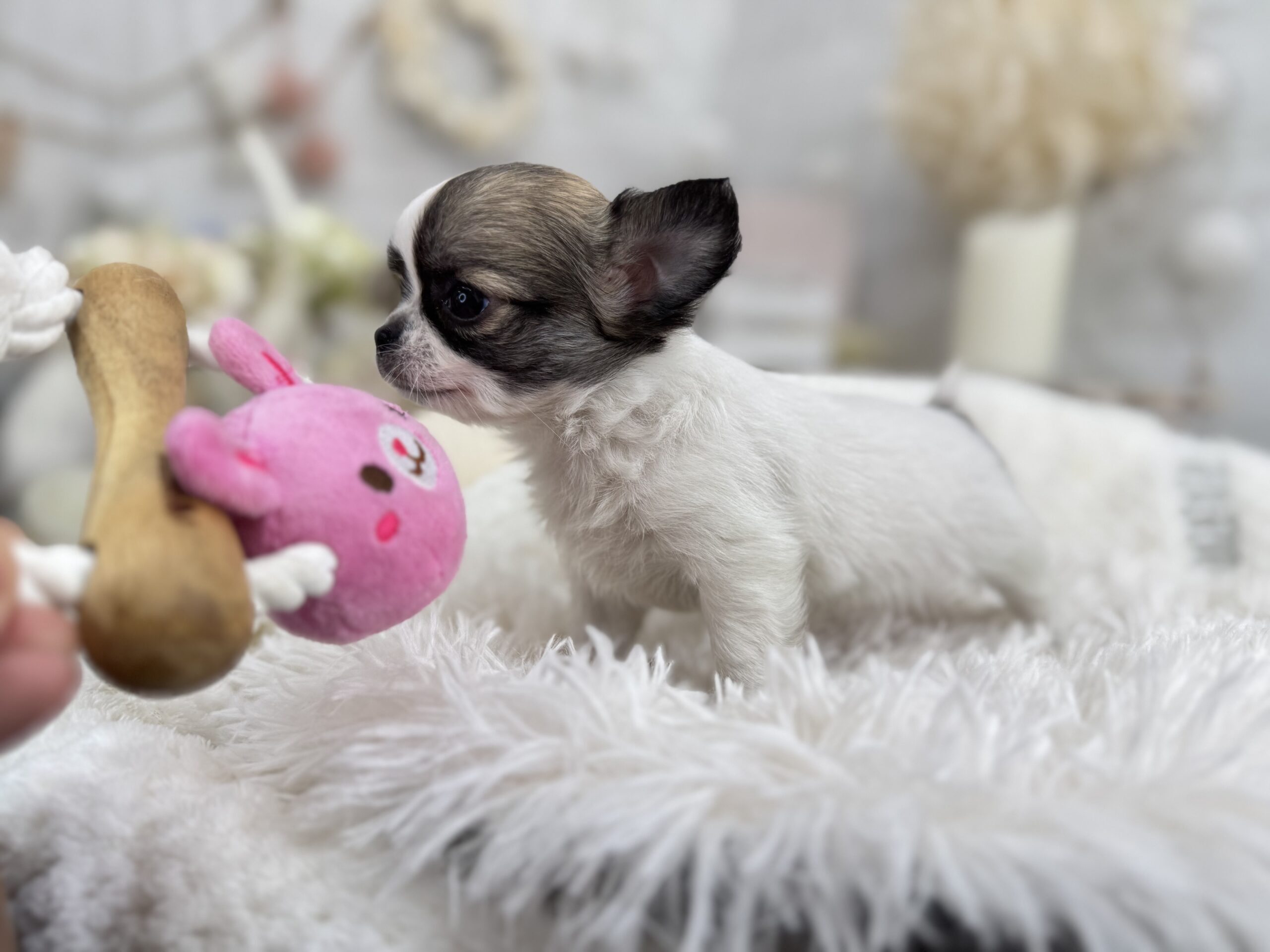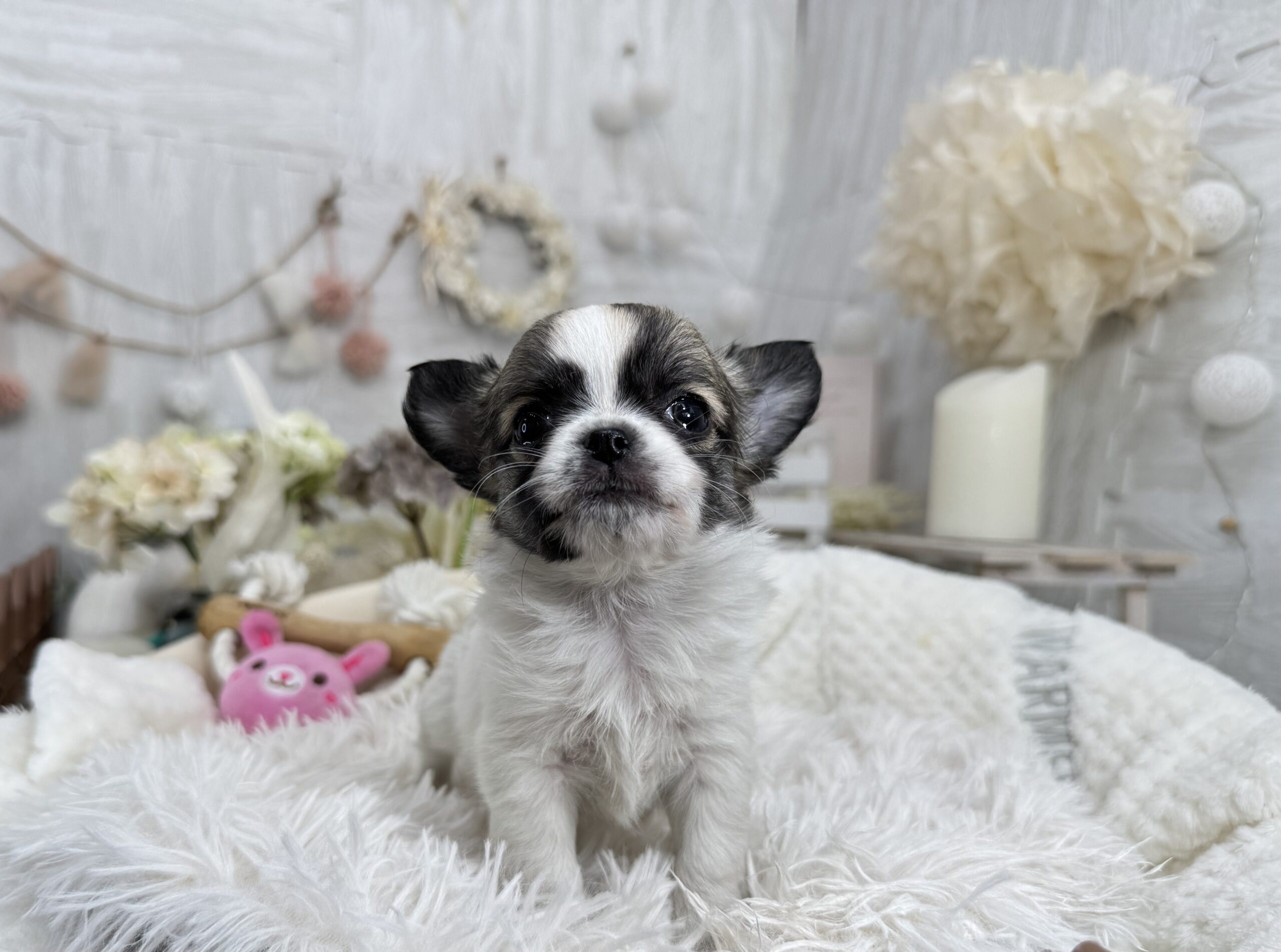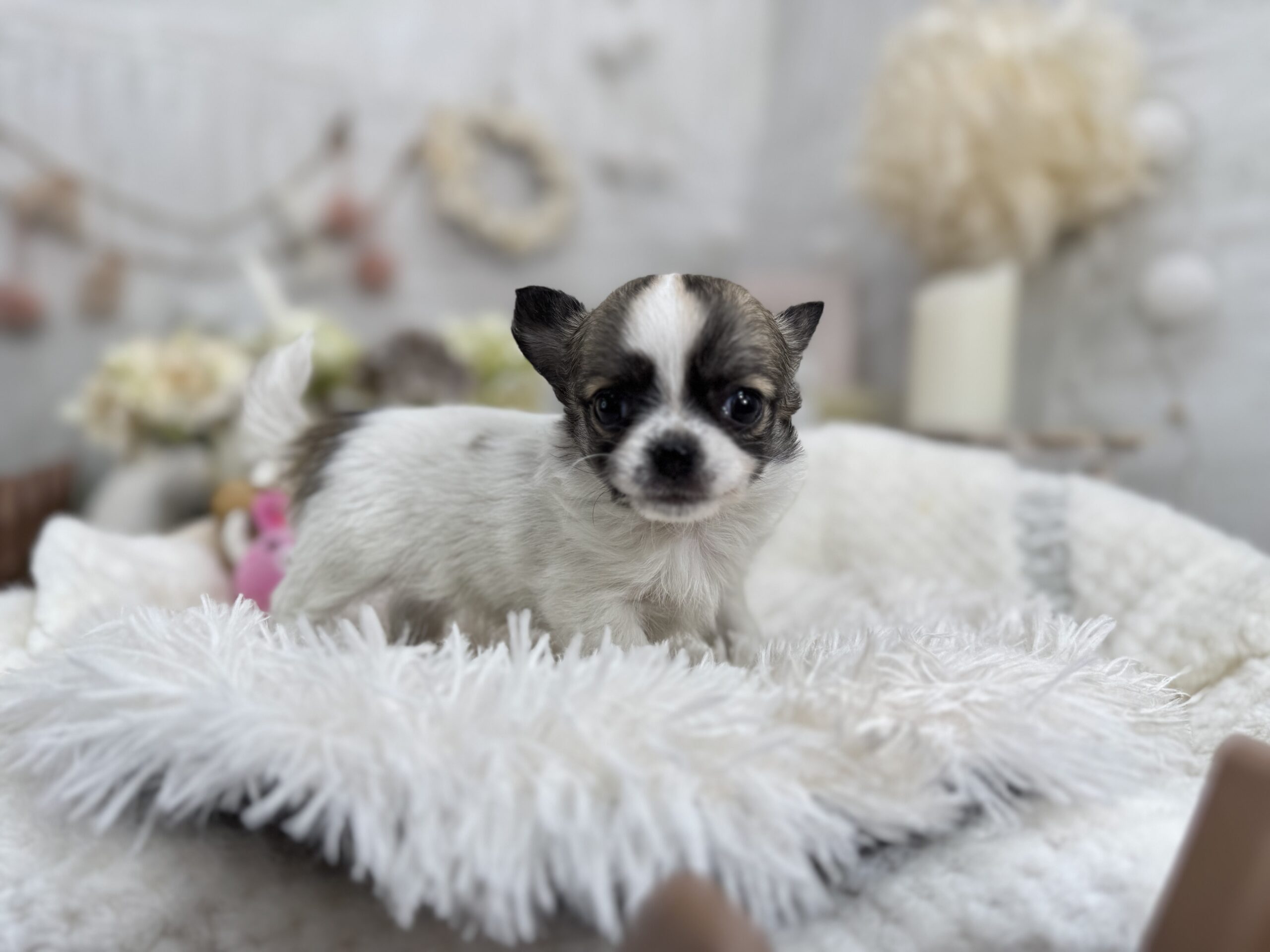 チワワ(ロング)♀ チワワ , 犬アイコン無し チワワ(ロング) 生体価格(税込)280,000円 状況未接種 生年月日2025年 11月 12日 性別女の子 カラーフォーン&ホワイト 血統書あり(JKC) 出生地京都府 その他 整ったお顔の女の子です✨お父さん チワワ(ロング) 毛色:パーティー 進行性網膜萎縮症(PRA)クリアお母さん チワワ(ロング) 毛色:ブラックタン&ホワイト 進行性網膜萎縮症(PRA)クリア健康診断済み 泉門少し空いております。体重 約530g(12月20日現在)生まれた仔犬達はお母さんの愛情いっぱいもらいながら衛生管理整えた環境で育てています。<当犬舎のこだわり>健康で可愛い仔犬のブリーディングを心がけております。当犬舎では可愛くて健康な子犬を作出しながら、安心・親切・丁寧をもっとうとして飼い主様お1人お1人様に対応をさせて頂いております。<購入予約について>予約金をいただいた時点で正式な予約とし、他のお客様からのお問い合わせの受付をストップさせていただきます。予約金は、ワンちゃんの生体価格の30%となります。また、お預かりした予約金は内金として充当します。<ご予約後のキャンセルについて>子犬・子猫をご予約後、お客様都合で子犬・子猫購入をキャンセルされた場合には、予約金の返金は致しかねますので、ご注意ください。<引渡し方法>店頭での手渡しこの場合、送料はかかりません。お迎えにかかる総額費用の内訳は、生体価格+ワクチン代(子犬6,600円、子猫4,400円)+子犬(子猫)フードとなります。店頭での見学後、後日お届けこの場合、お届け場所に応じた出張料が別途必要です。お迎えにかかる総額費用の内訳は、生体価格+ワクチン代+子犬(子猫)フード+出張料となります。※お届けでお迎えいただく場合には、お届けする前に必ず一度、店頭での現物確認、及び対面説明を受けていただく必要があります。<引き渡し時期について>生後60日前後を基本としておりますが、子犬・子猫の健康状態により前後いたします。▼保障制度▼お客様に販売した日より30日の生命保障をいたします。保障内容1.譲渡日から30日以内に当該保証対象犬が伝染病による死亡をした場合30日以内に当方が認めた同じクラスの同種の犬を無償で提供いたします。2.現金をお返しする場合、生体購入金額の50%となります。下記の場合は保障されません。1.飼育者の重大な過失に基づく死亡2.飼育者の故意による死亡3.伝染病予防ワクチンの接種を受けずに死亡4.獣医の治療を受けなかった場合の死亡5.飼育者以外からの保障請求6.事故による死亡・逃亡・及び盗難7.保障請求に関して虚偽の申告があった時8.死亡の場合は医師の死亡証明がない時※子犬の成長過程で生じた毛色の変化、歯の噛み合わせ、サイズ、陰睾丸など子犬の時点では不可能なため、クレーム、返品はお受けできませんのでご了承下さい。 お問い合わせ このページを印刷する