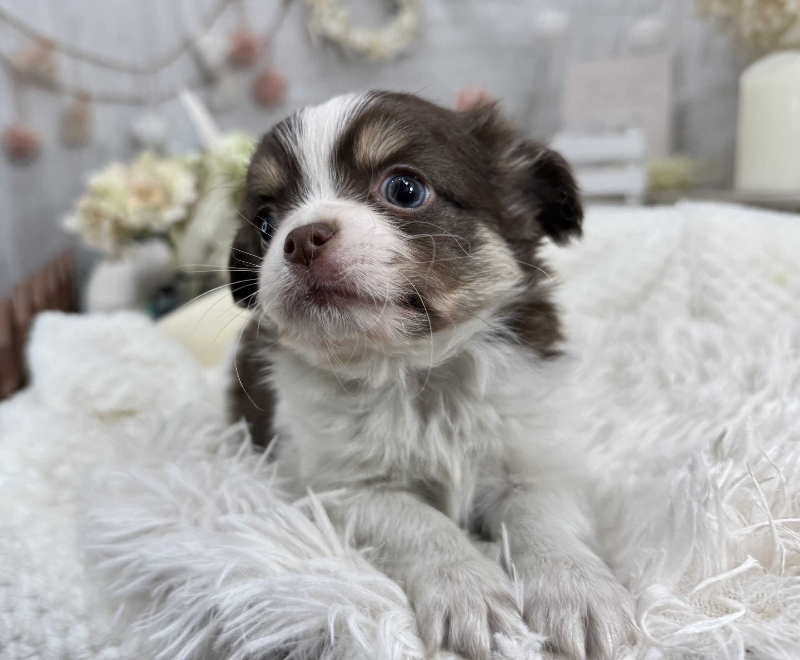 チワワ(ロング)♂ チワワ , 犬アイコン無し , 成約済み チワワ(ロング) 生体価格(税込)250,000円 状況未接種 生年月日2025年 11月 12日 性別男の子 カラーチョコレートタン&ホワイト 血統書あり(JKC) 出生地京都府 その他 ムチコロな男の子です♫お父さん チワワ(ロング) 毛色:パーティー 進行性網膜萎縮症(PRA)クリアお母さん チワワ(ロング) 毛色:ブラックタン&ホワイト 進行性網膜萎縮症(PRA)クリア健康診断済み 泉門少し空いております。体重 約810g(12月20日現在)生まれた仔犬達はお母さんの愛情いっぱいもらいながら衛生管理整えた環境で育てています。<当犬舎のこだわり>健康で可愛い仔犬のブリーディングを心がけております。当犬舎では可愛くて健康な子犬を作出しながら、安心・親切・丁寧をもっとうとして飼い主様お1人お1人様に対応をさせて頂いております。<購入予約について>予約金をいただいた時点で正式な予約とし、他のお客様からのお問い合わせの受付をストップさせていただきます。予約金は、ワンちゃんの生体価格の30%となります。また、お預かりした予約金は内金として充当します。<ご予約後のキャンセルについて>子犬・子猫をご予約後、お客様都合で子犬・子猫購入をキャンセルされた場合には、予約金の返金は致しかねますので、ご注意ください。<引渡し方法>店頭での手渡しこの場合、送料はかかりません。お迎えにかかる総額費用の内訳は、生体価格+ワクチン代(子犬6,600円、子猫4,400円)+子犬(子猫)フードとなります。店頭での見学後、後日お届けこの場合、お届け場所に応じた出張料が別途必要です。お迎えにかかる総額費用の内訳は、生体価格+ワクチン代+子犬(子猫)フード+出張料となります。※お届けでお迎えいただく場合には、お届けする前に必ず一度、店頭での現物確認、及び対面説明を受けていただく必要があります。<引き渡し時期について>生後60日前後を基本としておりますが、子犬・子猫の健康状態により前後いたします。▼保障制度▼お客様に販売した日より30日の生命保障をいたします。保障内容1.譲渡日から30日以内に当該保証対象犬が伝染病による死亡をした場合30日以内に当方が認めた同じクラスの同種の犬を無償で提供いたします。2.現金をお返しする場合、生体購入金額の50%となります。下記の場合は保障されません。1.飼育者の重大な過失に基づく死亡2.飼育者の故意による死亡3.伝染病予防ワクチンの接種を受けずに死亡4.獣医の治療を受けなかった場合の死亡5.飼育者以外からの保障請求6.事故による死亡・逃亡・及び盗難7.保障請求に関して虚偽の申告があった時8.死亡の場合は医師の死亡証明がない時※子犬の成長過程で生じた毛色の変化、歯の噛み合わせ、サイズ、陰睾丸など子犬の時点では不可能なため、クレーム、返品はお受けできませんのでご了承下さい。 お問い合わせ このページを印刷する