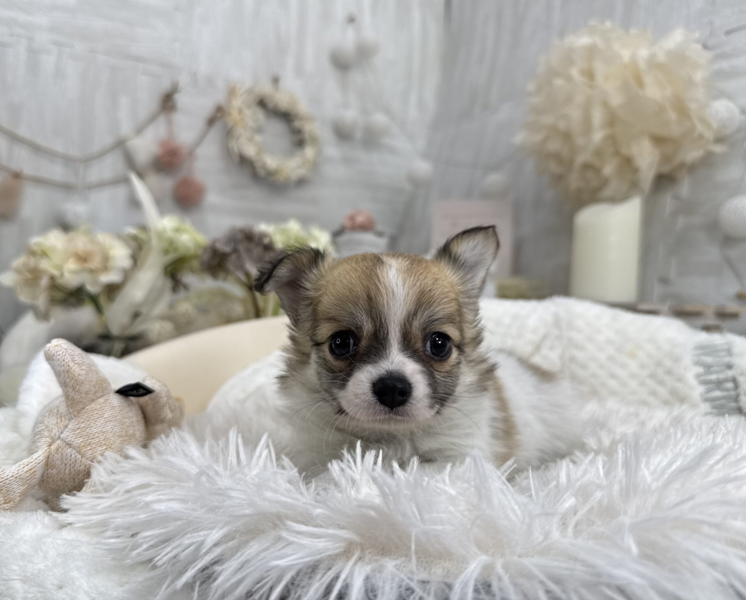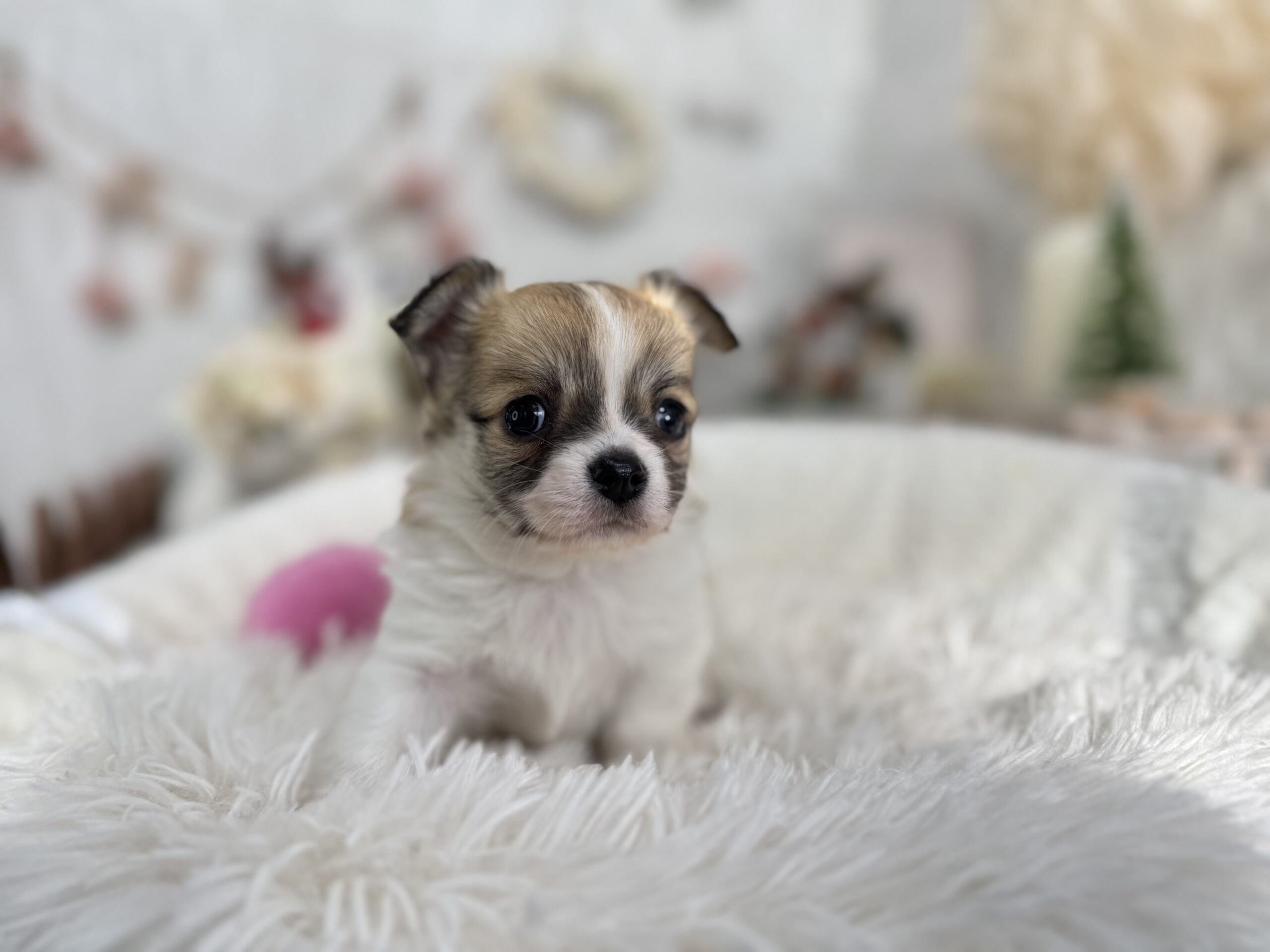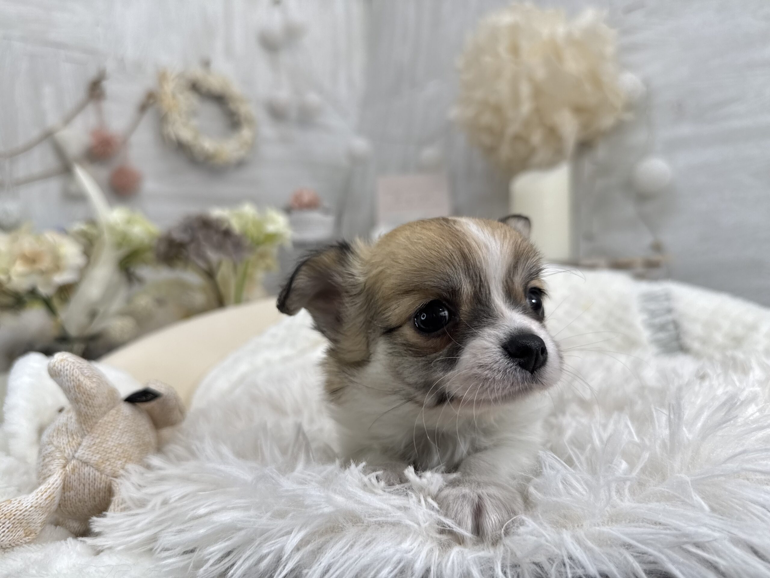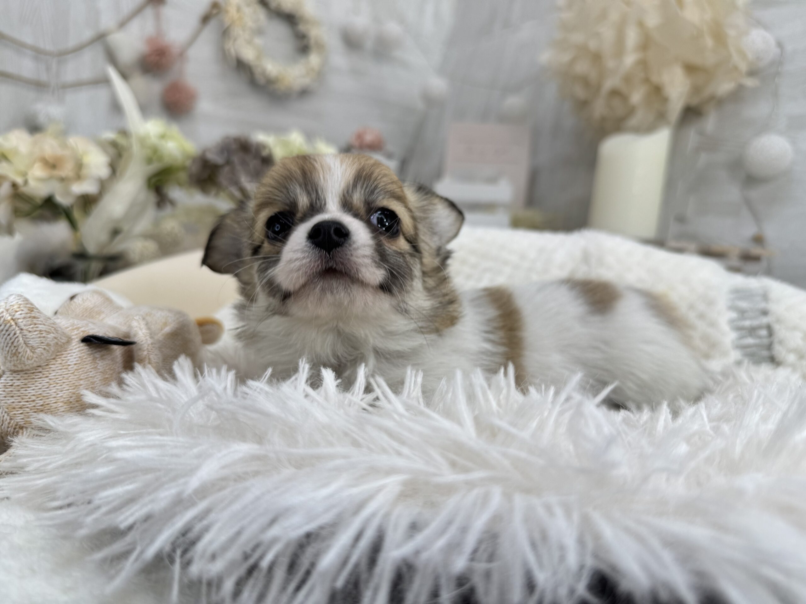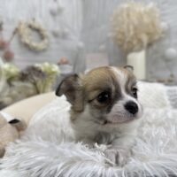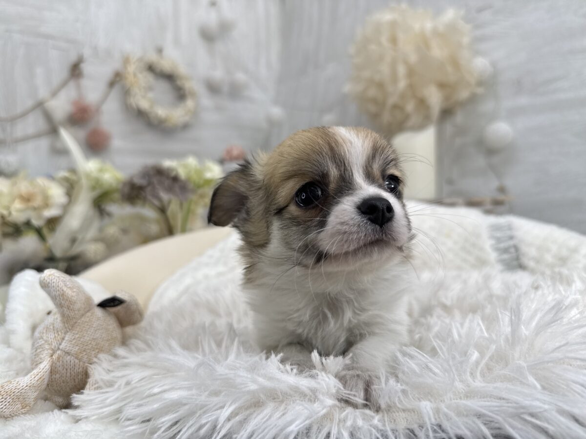 チワワ(ロング)♂ チワワ , 犬アイコン無し チワワ(ロング) 生体価格(税込)240,000円 状況未接種 生年月日2025年 11月 12日 性別男の子 カラーフォーン&ホワイト 血統書あり(JKC) 出生地京都府 その他 ムチコロな男の子です♫お父さん チワワ(ロング) 毛色:パーティー 進行性網膜萎縮症(PRA)クリアお母さん チワワ(ロング) 毛色:ブラックタン&ホワイト 進行性網膜萎縮症(PRA)クリア健康診断済み 泉門少し空いております。噛み合わせ オーバーショット体重 約660g(12月20日現在)生まれた仔犬達はお母さんの愛情いっぱいもらいながら衛生管理整えた環境で育てています。<当犬舎のこだわり>健康で可愛い仔犬のブリーディングを心がけております。当犬舎では可愛くて健康な子犬を作出しながら、安心・親切・丁寧をもっとうとして飼い主様お1人お1人様に対応をさせて頂いております。<購入予約について>予約金をいただいた時点で正式な予約とし、他のお客様からのお問い合わせの受付をストップさせていただきます。予約金は、ワンちゃんの生体価格の30%となります。また、お預かりした予約金は内金として充当します。<ご予約後のキャンセルについて>子犬・子猫をご予約後、お客様都合で子犬・子猫購入をキャンセルされた場合には、予約金の返金は致しかねますので、ご注意ください。<引渡し方法>店頭での手渡しこの場合、送料はかかりません。お迎えにかかる総額費用の内訳は、生体価格+ワクチン代(子犬6,600円、子猫4,400円)+子犬(子猫)フードとなります。店頭での見学後、後日お届けこの場合、お届け場所に応じた出張料が別途必要です。お迎えにかかる総額費用の内訳は、生体価格+ワクチン代+子犬(子猫)フード+出張料となります。※お届けでお迎えいただく場合には、お届けする前に必ず一度、店頭での現物確認、及び対面説明を受けていただく必要があります。<引き渡し時期について>生後60日前後を基本としておりますが、子犬・子猫の健康状態により前後いたします。▼保障制度▼お客様に販売した日より30日の生命保障をいたします。保障内容1.譲渡日から30日以内に当該保証対象犬が伝染病による死亡をした場合30日以内に当方が認めた同じクラスの同種の犬を無償で提供いたします。2.現金をお返しする場合、生体購入金額の50%となります。下記の場合は保障されません。1.飼育者の重大な過失に基づく死亡2.飼育者の故意による死亡3.伝染病予防ワクチンの接種を受けずに死亡4.獣医の治療を受けなかった場合の死亡5.飼育者以外からの保障請求6.事故による死亡・逃亡・及び盗難7.保障請求に関して虚偽の申告があった時8.死亡の場合は医師の死亡証明がない時※子犬の成長過程で生じた毛色の変化、歯の噛み合わせ、サイズ、陰睾丸など子犬の時点では不可能なため、クレーム、返品はお受けできませんのでご了承下さい。 お問い合わせ このページを印刷する