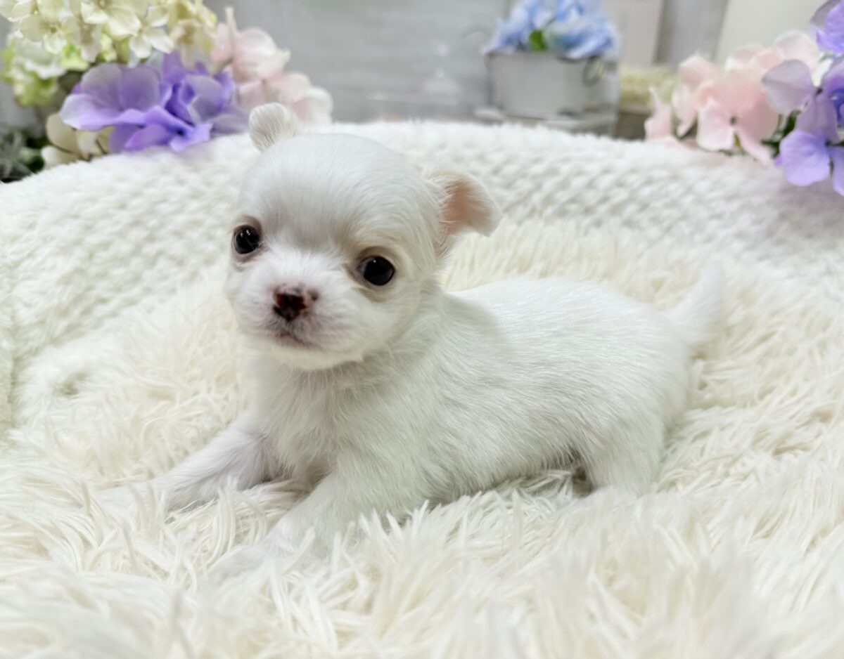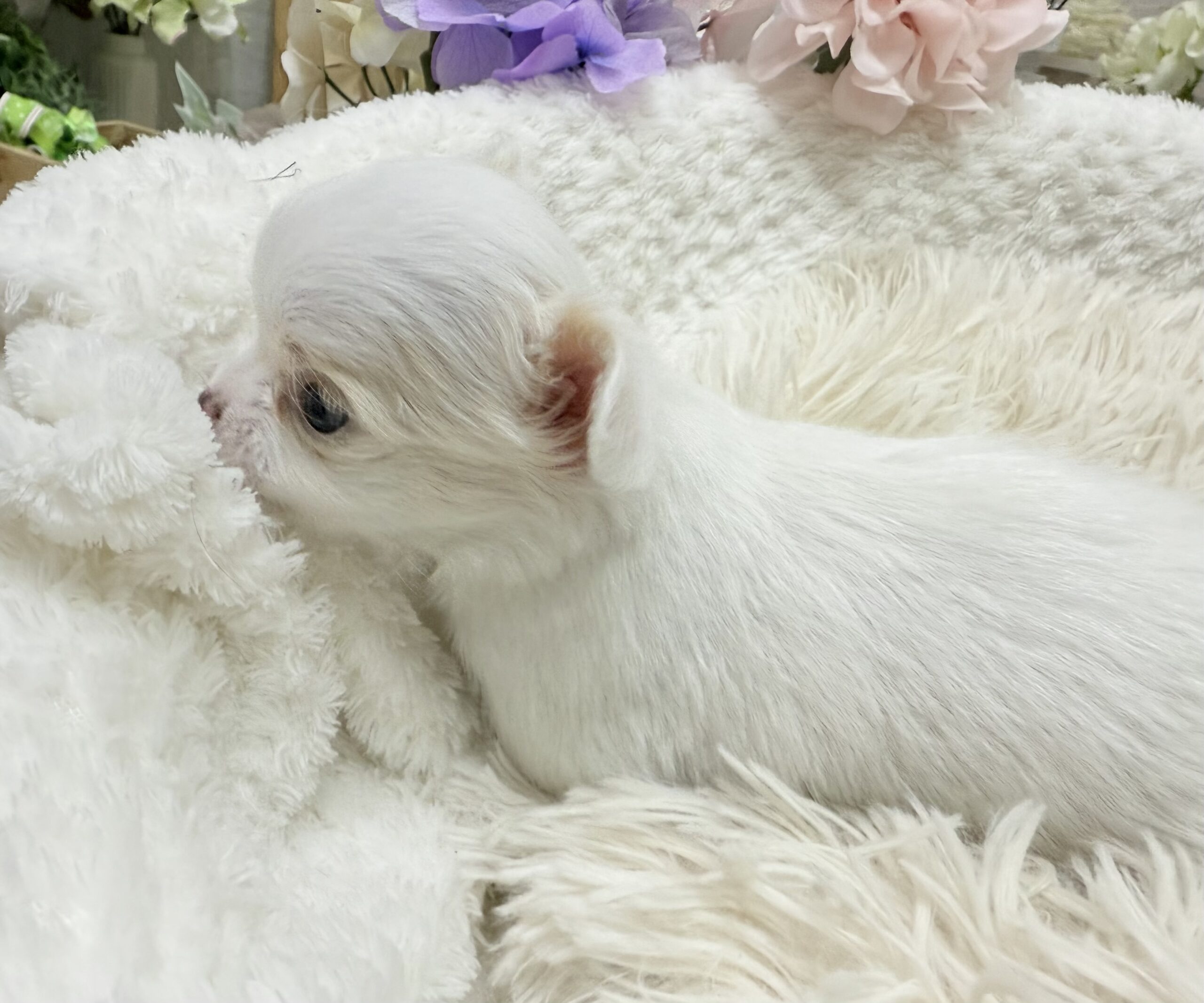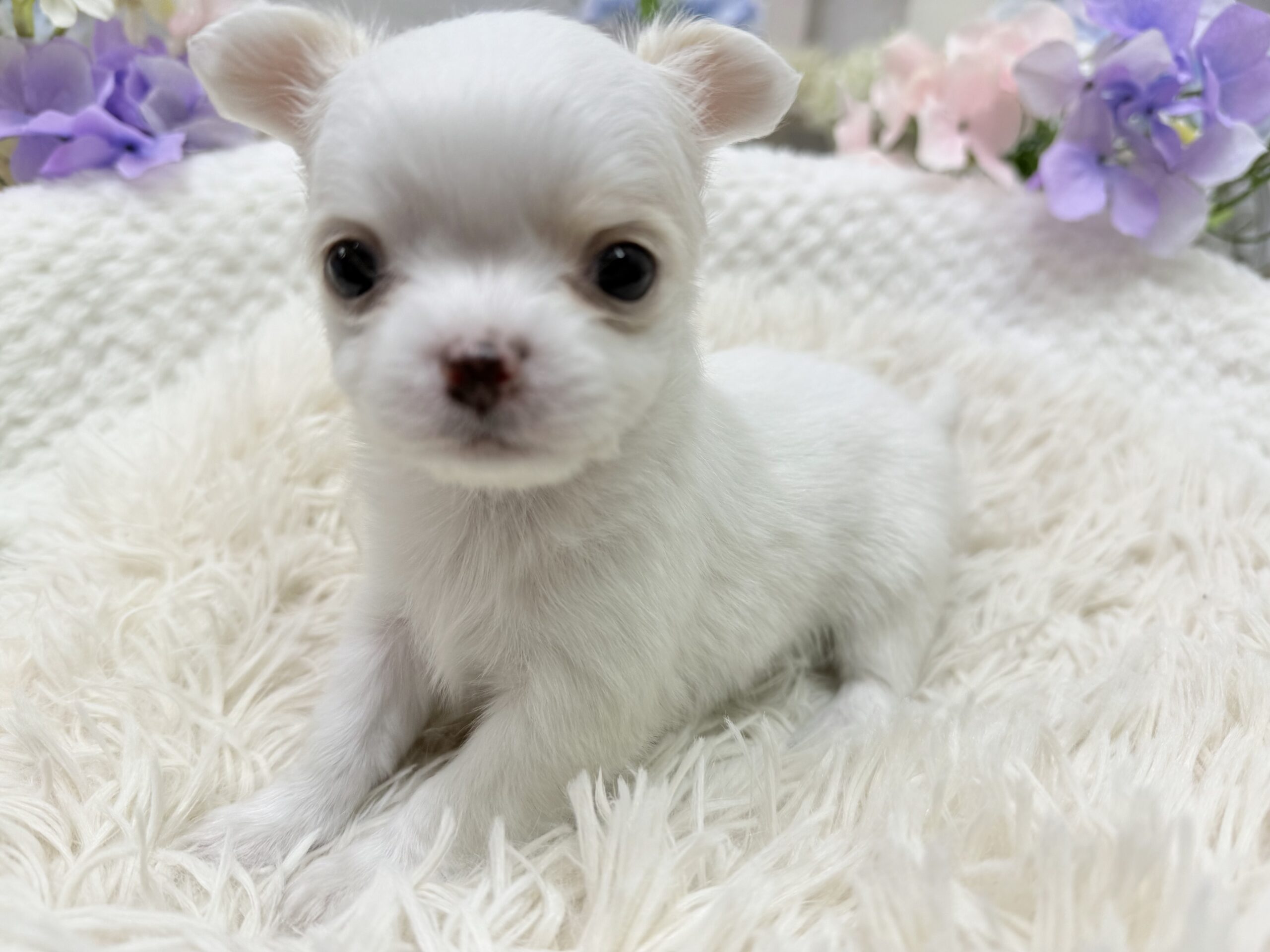 チワワ(ロング) チワワ , 犬アイコン無し チワワ(ロング) 生体価格(税込)220,000円 状況未接種 生年月日2026年 1月 18日 性別男の子 カラーホワイト 血統書あり(JKC) 出生地京都府 その他 たくさんのワンちゃんの中から,この子をご覧いただきありがとうございます。お目目クリクリでとっても可愛いお顔をしています♫健康診断結果 泉門あり(2月25日現在)体重 450g(2月25日現在)生まれた仔犬達はお母さんの愛情いっぱいもらいながら衛生管理整えた環境で育てています。<当犬舎のこだわり>健康で可愛い仔犬のブリーディングを心がけております。当犬舎では可愛くて健康な子犬を作出しながら、安心・親切・丁寧をもっとうとして飼い主様お1人お1人様に対応をさせて頂いております。<お問い合わせについて>当犬舎はブリーディング以外にも業務がございますので、早急にお返事ができない場合もございます。24時間以内にはお返事させていただきますのでご了承をお願いいたします。<購入予約について>予約金をいただいた時点で正式な予約とし、他のお客様からのお問い合わせの受付をストップさせていただきます。予約金は、ワンちゃんの生体価格の30%となります。*お客様都合によるキャンセルの場合は返金できませんのでご了承をお願いいたします。 お問い合わせ このページを印刷する