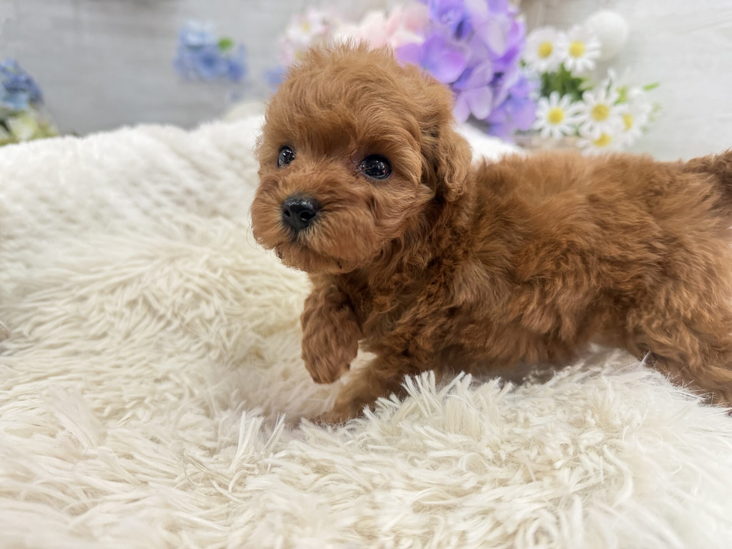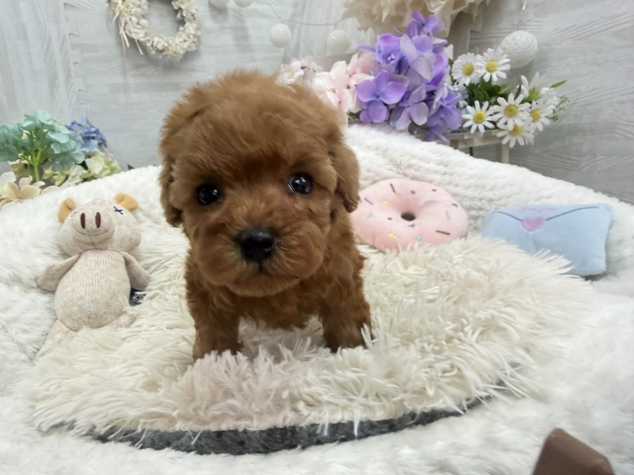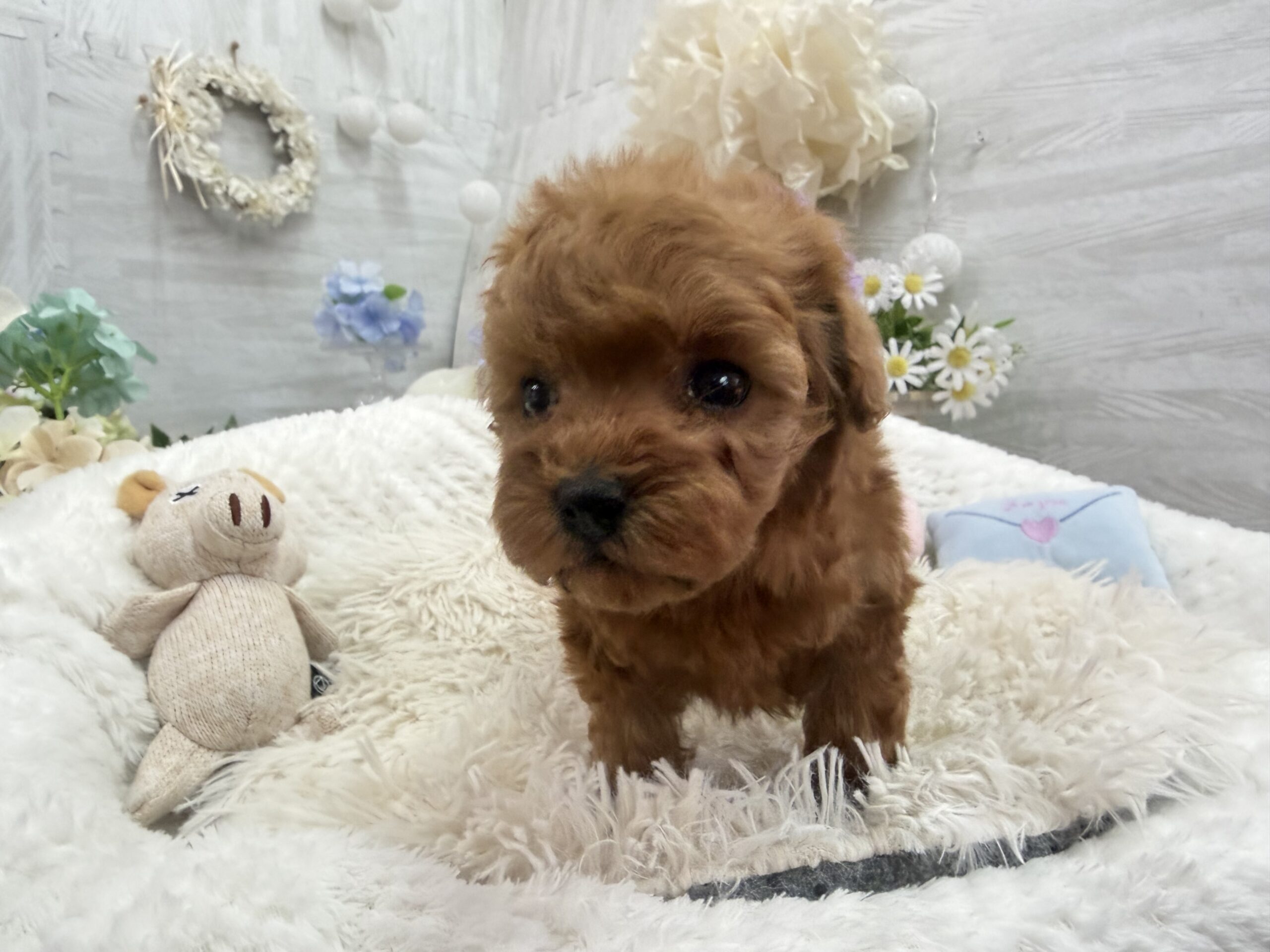 トイプードル(タイニーサイズ)♀ トイプードル , 犬アイコン無し トイプードル(タイニーサイズ) 生体価格(税込)390,000円 状況未接種 生年月日2026年 3月 15日 性別女の子 カラーレッドフォーン 血統書あり(JKC) 出生地京都府 その他 たくさんのワンちゃんの中から,この子をご覧いただきありがとうございます。キュルキュルお目目のと〜っても可愛い♡小さな女の子♡もう少し毛が伸びればもっと可愛くなりますよ♫健康診断済み 異常なし (4月14日現在)生まれた仔犬達はお母さんの愛情いっぱいもらいながら衛生管理整えた環境で育てています。<当犬舎のこだわり>健康で可愛い仔犬のブリーディングを心がけております。当犬舎では可愛くて健康な子犬を作出しながら、安心・親切・丁寧をもっとうとして飼い主様お1人お1人様に対応をさせて頂いております。<購入予約について>予約金をいただいた時点で正式な予約とし、他のお客様からのお問い合わせの受付をストップさせていただきます。予約金は、ワンちゃんの生体価格の30%となります。*お客様都合によるキャンセルの場合は返金できませんのでご了承をお願いいたします。▼保障制度▼お客様に販売した日より30日の生命保障をいたします。保障内容1.譲渡日から30日以内に当該保証対象犬が伝染病による死亡をした場合30日以内に当方が認めた同じクラスの同種の犬を無償で提供いたします。2.現金をお返しする場合、生体購入金額の50%となります。下記の場合は保障されません。1.飼育者の重大な過失に基づく死亡2.飼育者の故意による死亡3.伝染病予防ワクチンの接種を受けずに死亡4.獣医の治療を受けなかった場合の死亡5.飼育者以外からの保障請求6.事故による死亡・逃亡・及び盗難7.保障請求に関して虚偽の申告があった時8.死亡の場合は医師の死亡証明がない時※子犬の成長過程で生じた毛色の変化、歯の噛み合わせ、サイズ、陰睾丸など子犬の時点では不可能なため、クレーム、返品はお受けできませんのでご了承下さい。 お問い合わせ このページを印刷する