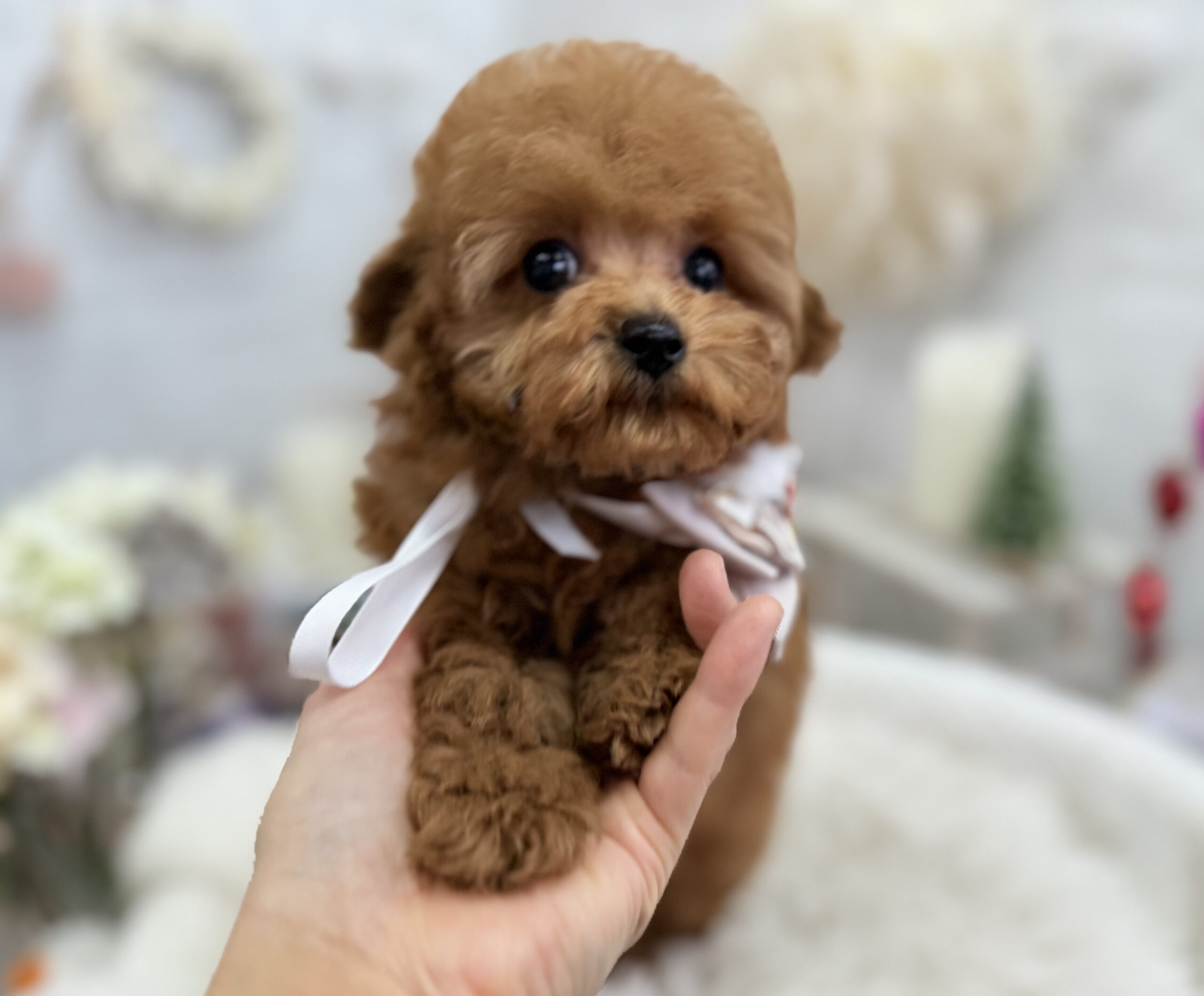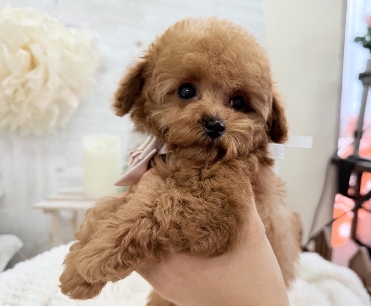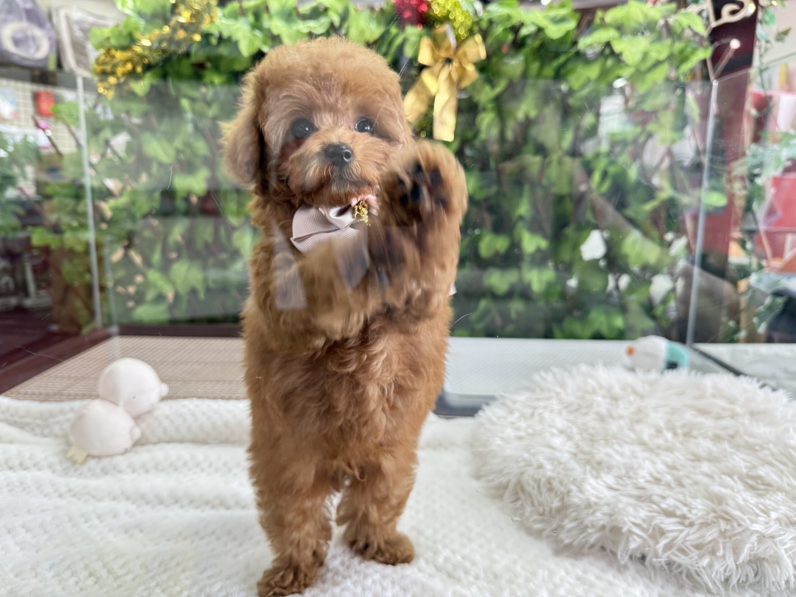 トイ•プードル(タイニー)♂ トイプードル , 犬アイコン無し トイプードル(タイニー) 生体価格(税込)280,000円 状況2回目混合ワクチン接種済(別途費用) 生年月日2025年 9月 11日 性別男の子 カラーレッドフォーン 血統書あり(JKC) 出生地京都府 その他 たくさんのワンちゃんの中から,この子をご覧いただきありがとうございます。タイニーサイズ予想★アンヨの短いドワーフタイプ♡とっても可愛いお顔の男の子です♫人が大好きでとっても人懐っこい甘えん坊な子です^ ^健康診断結果 異常なし生まれた仔犬達はお母さんの愛情いっぱいもらいながら衛生管理整えた環境で育てています。<当犬舎のこだわり>健康で可愛い仔犬のブリーディングを心がけております。当犬舎では可愛くて健康な子犬を作出しながら、安心・親切・丁寧をもっとうとして飼い主様お1人お1人様に対応をさせて頂いております。<購入予約について>予約金をいただいた時点で正式な予約とし、他のお客様からのお問い合わせの受付をストップさせていただきます。予約金は、ワンちゃんの生体価格の30%となります。また、お預かりした予約金は内金として充当します。<ご予約後のキャンセルについて>子犬・子猫をご予約後、お客様都合で子犬・子猫購入をキャンセルされた場合には、予約金の返金は致しかねますので、ご注意ください。<引渡し方法>店頭での手渡しこの場合、送料はかかりません。お迎えにかかる総額費用の内訳は、生体価格+ワクチン代(子犬6,600円、子猫4,400円)+子犬(子猫)フードとなります。店頭での見学後、後日お届けこの場合、お届け場所に応じた出張料が別途必要です。お迎えにかかる総額費用の内訳は、生体価格+ワクチン代+子犬(子猫)フード+出張料となります。※お届けでお迎えいただく場合には、お届けする前に必ず一度、店頭での現物確認、及び対面説明を受けていただく必要があります。<引き渡し時期について>生後60日前後を基本としておりますが、子犬・子猫の健康状態により前後いたします。▼保障制度▼お客様に販売した日より30日の生命保障をいたします。保障内容1.譲渡日から30日以内に当該保証対象犬が伝染病による死亡をした場合30日以内に当方が認めた同じクラスの同種の犬を無償で提供いたします。2.現金をお返しする場合、生体購入金額の50%となります。下記の場合は保障されません。1.飼育者の重大な過失に基づく死亡2.飼育者の故意による死亡3.伝染病予防ワクチンの接種を受けずに死亡4.獣医の治療を受けなかった場合の死亡5.飼育者以外からの保障請求6.事故による死亡・逃亡・及び盗難7.保障請求に関して虚偽の申告があった時8.死亡の場合は医師の死亡証明がない時※子犬の成長過程で生じた毛色の変化、歯の噛み合わせ、サイズ、陰睾丸など子犬の時点では不可能なため、クレーム、返品はお受けできませんのでご了承下さい。 お問い合わせ このページを印刷する