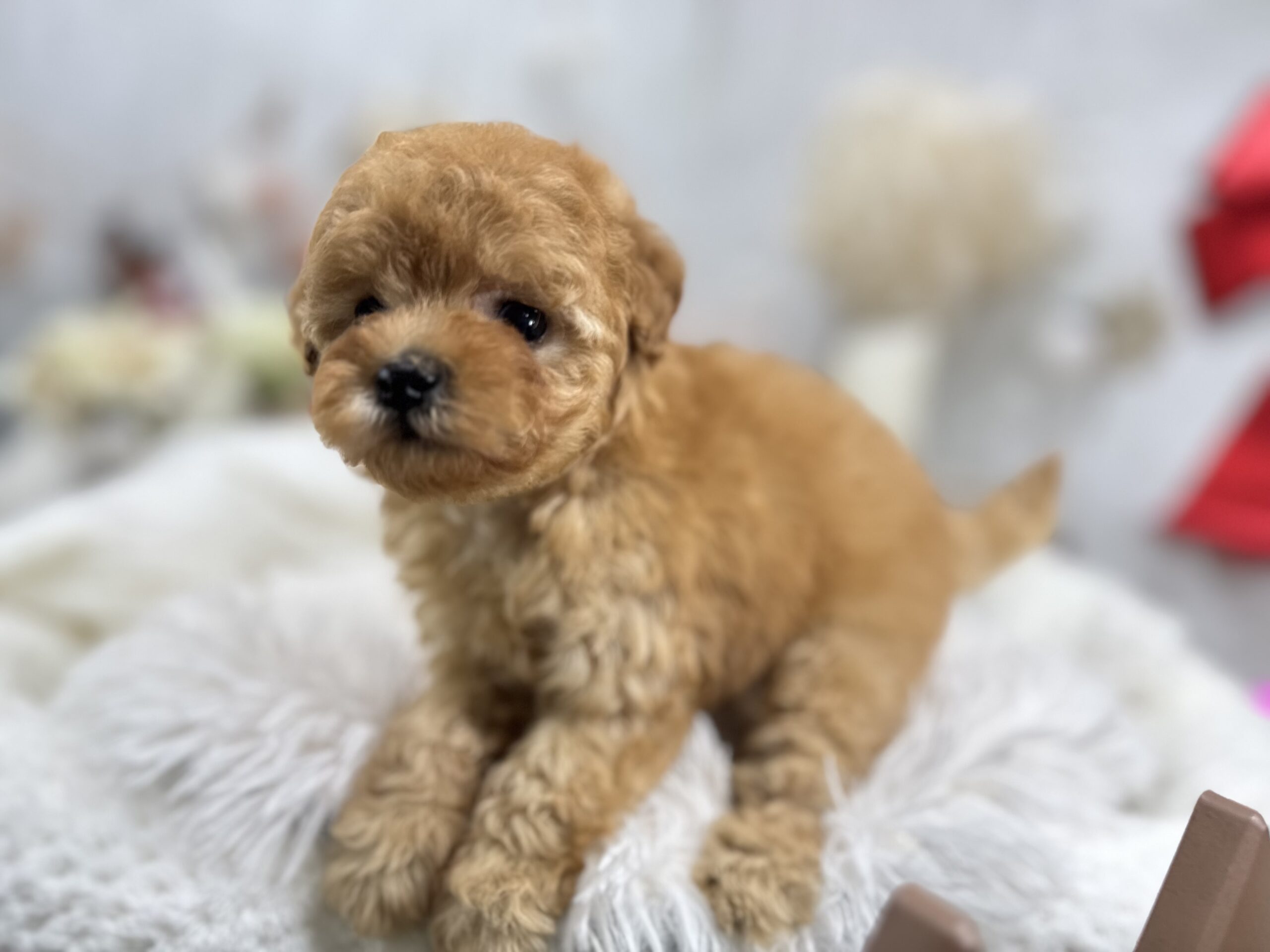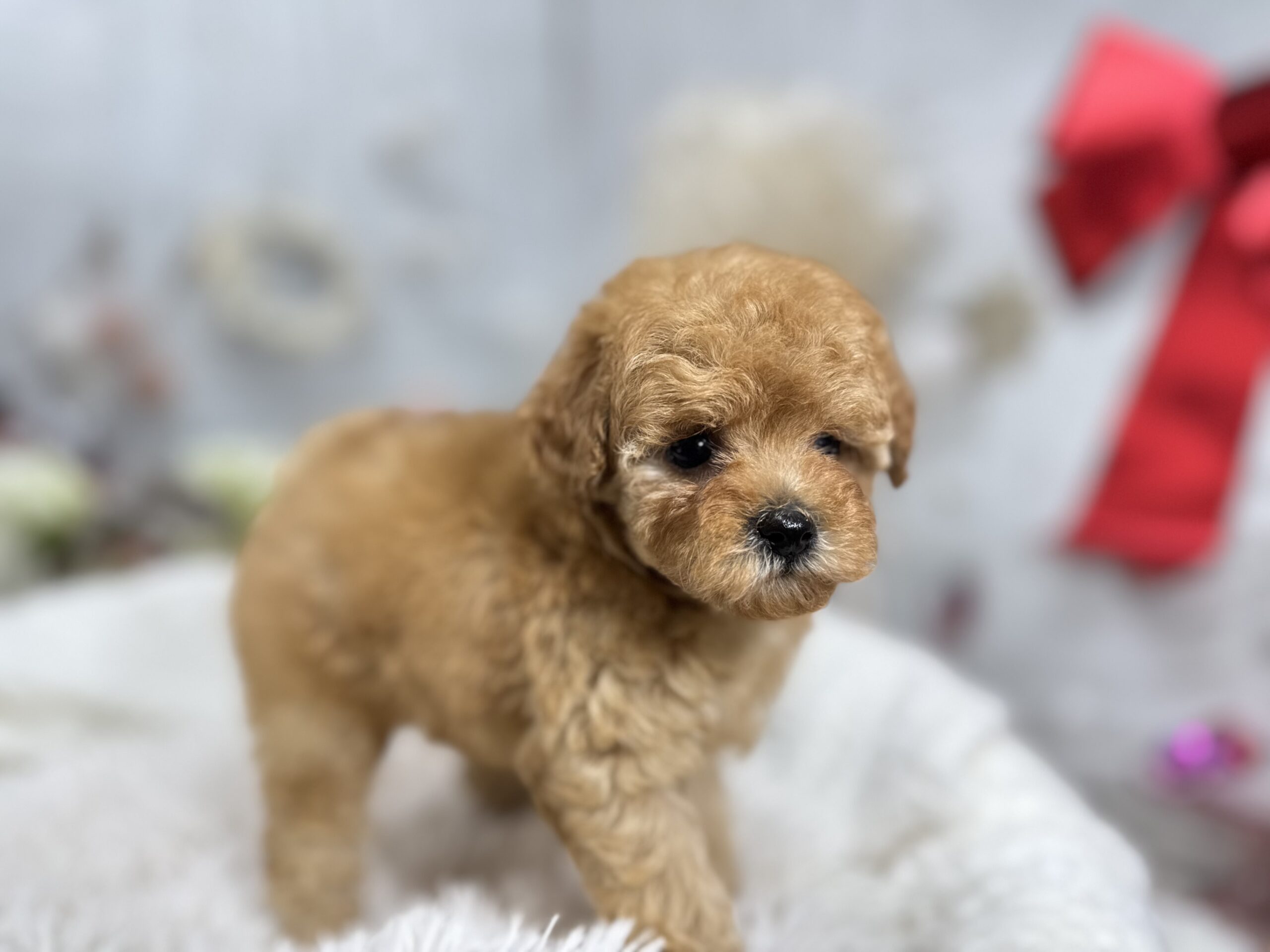 トイ•プードル(タイニー) トイプードル , 犬アイコン無し , 成約済み トイプードル(タイニー) 生体価格(税込)290,000円 状況未接種 生年月日2025年 11月 2日 性別女の子 カラーオレンジフォーン 血統書あり(JKC) 出生地京都府 その他 2匹姉妹で誕生しました。うるうるのお目目がたまらなく可愛い女の子です。サイズはタイニー予想です♫健康診断済み 膝蓋骨G1 (12月10日現在)<当犬舎のこだわり>生まれた仔犬達はお母さんの愛情いっぱいもらいながら衛生管理整えた環境で育てています。健康で可愛い仔犬のブリーディングを心がけております。当犬舎では可愛くて健康な子犬を作出しながら、安心・親切・丁寧をもっとうとして飼い主様お1人お1人様に対応をさせて頂いております。<購入予約について>予約金をいただいた時点で正式な予約とし、他のお客様からのお問い合わせの受付をストップさせていただきます。予約金は、ワンちゃんの生体価格の30%となります。また、お預かりした予約金は内金として充当します。<ご予約後のキャンセルについて>子犬・子猫をご予約後、お客様都合で子犬・子猫購入をキャンセルされた場合には、予約金の返金は致しかねますので、ご注意ください。<引渡し方法>店頭での手渡しこの場合、送料はかかりません。お迎えにかかる総額費用の内訳は、生体価格+ワクチン代(子犬6,600円、子猫4,400円)+子犬(子猫)フードとなります。店頭での見学後、後日お届けこの場合、お届け場所に応じた出張料が別途必要です。お迎えにかかる総額費用の内訳は、生体価格+ワクチン代+子犬(子猫)フード+出張料となります。※お届けでお迎えいただく場合には、お届けする前に必ず一度、店頭での現物確認、及び対面説明を受けていただく必要があります。<引き渡し時期について>生後60日前後を基本としておりますが、子犬・子猫の健康状態により前後いたします。▼保障制度▼お客様に販売した日より30日の生命保障をいたします。保障内容1.譲渡日から30日以内に当該保証対象犬が伝染病による死亡をした場合30日以内に当方が認めた同じクラスの同種の犬を無償で提供いたします。2.現金をお返しする場合、生体購入金額の50%となります。下記の場合は保障されません。1.飼育者の重大な過失に基づく死亡2.飼育者の故意による死亡3.伝染病予防ワクチンの接種を受けずに死亡4.獣医の治療を受けなかった場合の死亡5.飼育者以外からの保障請求6.事故による死亡・逃亡・及び盗難7.保障請求に関して虚偽の申告があった時8.死亡の場合は医師の死亡証明がない時※子犬の成長過程で生じた毛色の変化、歯の噛み合わせ、サイズ、陰睾丸など子犬の時点では不可能なため、クレーム、返品はお受けできませんのでご了承下さい。 お問い合わせ このページを印刷する