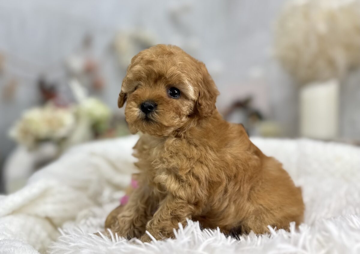 トイ•プードル(タイニー) トイプードル , 犬アイコン無し , 成約済み トイプードル(タイニー) 生体価格(税込)290,000円 状況未接種 生年月日2025年 11月 2日 性別女の子 カラーオレンジフォーン 血統書あり(JKC) 出生地京都府 その他 たくさんのワンちゃんの中から,この子をご覧いただきありがとうございます。2匹姉妹で誕生しました。うるうるのお目目がたまらなく可愛い女の子です。サイズはタイニー予想です♫健康診断済み 膝蓋骨G1 (12月10日現在)<当犬舎のこだわり>生まれた仔犬達はお母さんの愛情いっぱいもらいながら衛生管理整えた環境で育てています。健康で可愛い仔犬のブリーディングを心がけております。当犬舎では可愛くて健康な子犬を作出しながら、安心・親切・丁寧をもっとうとして飼い主様お1人お1人様に対応をさせて頂いております。<購入予約について>予約金をいただいた時点で正式な予約とし、他のお客様からのお問い合わせの受付をストップさせていただきます。予約金は、ワンちゃんの生体価格の30%となります。また、お預かりした予約金は内金として充当します。<ご予約後のキャンセルについて>子犬・子猫をご予約後、お客様都合で子犬・子猫購入をキャンセルされた場合には、予約金の返金は致しかねますので、ご注意ください。<引渡し方法>店頭での手渡しこの場合、送料はかかりません。お迎えにかかる総額費用の内訳は、生体価格+ワクチン代(子犬6,600円、子猫4,400円)+子犬(子猫)フードとなります。店頭での見学後、後日お届けこの場合、お届け場所に応じた出張料が別途必要です。お迎えにかかる総額費用の内訳は、生体価格+ワクチン代+子犬(子猫)フード+出張料となります。※お届けでお迎えいただく場合には、お届けする前に必ず一度、店頭での現物確認、及び対面説明を受けていただく必要があります。<引き渡し時期について>生後60日前後を基本としておりますが、子犬・子猫の健康状態により前後いたします。▼保障制度▼お客様に販売した日より30日の生命保障をいたします。保障内容1.譲渡日から30日以内に当該保証対象犬が伝染病による死亡をした場合30日以内に当方が認めた同じクラスの同種の犬を無償で提供いたします。2.現金をお返しする場合、生体購入金額の50%となります。下記の場合は保障されません。1.飼育者の重大な過失に基づく死亡2.飼育者の故意による死亡3.伝染病予防ワクチンの接種を受けずに死亡4.獣医の治療を受けなかった場合の死亡5.飼育者以外からの保障請求6.事故による死亡・逃亡・及び盗難7.保障請求に関して虚偽の申告があった時8.死亡の場合は医師の死亡証明がない時※子犬の成長過程で生じた毛色の変化、歯の噛み合わせ、サイズ、陰睾丸など子犬の時点では不可能なため、クレーム、返品はお受けできませんのでご了承下さい。 お問い合わせ このページを印刷する