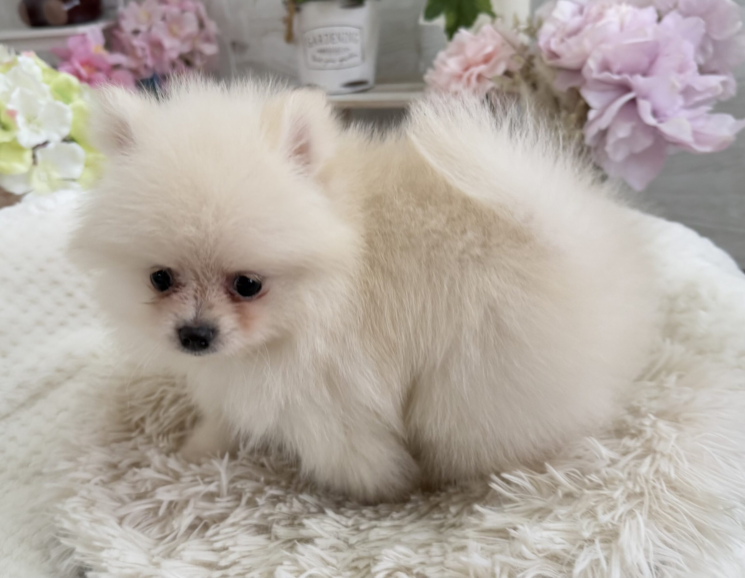 ポメラニアン♀ ポメラニアン , 犬アイコン無し , 成約済み ポメラニアン 生体価格(税込)280,000円 状況未接種 生年月日2025年 7月 23日 性別女の子 カラークリーム 血統書あり(JKC) 出生地京都府 その他 たくさんのワンちゃんの中から,この子をご覧いただきありがとうございます。可愛らしいお顔立ちの女の子です。5匹兄妹でスクスク成長しています。健康診断済み そけいヘルニアあり(8月25日時点) 日常生活に支障はございません体重495g(8月29日測定)生まれた仔犬達はお母さんの愛情いっぱいもらいながら衛生管理整えた環境で育てています。<当犬舎のこだわり>健康で可愛い仔犬のブリーディングを心がけております。当犬舎では可愛くて健康な子犬を作出しながら、安心・親切・丁寧をもっとうとして飼い主様お1人お1人様に対応をさせて頂いております。<購入予約について>予約金をいただいた時点で正式な予約とし、他のお客様からのお問い合わせの受付をストップさせていただきます。予約金は、ワンちゃんの生体価格の30%となります。また、お預かりした予約金は内金として充当します。<ご予約後のキャンセルについて>子犬・子猫をご予約後、お客様都合で子犬・子猫購入をキャンセルされた場合には、予約金の返金は致しかねますので、ご注意ください。<引渡し方法>店頭での手渡しこの場合、送料はかかりません。お迎えにかかる総額費用の内訳は、生体価格+ワクチン代(子犬6,600円、子猫4,400円)+子犬(子猫)フードとなります。店頭での見学後、後日お届けこの場合、お届け場所に応じた出張料が別途必要です。お迎えにかかる総額費用の内訳は、生体価格+ワクチン代+子犬(子猫)フード+出張料となります。※お届けでお迎えいただく場合には、お届けする前に必ず一度、店頭での現物確認、及び対面説明を受けていただく必要があります。<引き渡し時期について>生後60日前後を基本としておりますが、子犬・子猫の健康状態により前後いたします。▼保障制度▼お客様に販売した日より30日の生命保障をいたします。保障内容1.譲渡日から30日以内に当該保証対象犬が伝染病による死亡をした場合30日以内に当方が認めた同じクラスの同種の犬を無償で提供いたします。2.現金をお返しする場合、生体購入金額の50%となります。下記の場合は保障されません。1.飼育者の重大な過失に基づく死亡2.飼育者の故意による死亡3.伝染病予防ワクチンの接種を受けずに死亡4.獣医の治療を受けなかった場合の死亡5.飼育者以外からの保障請求6.事故による死亡・逃亡・及び盗難7.保障請求に関して虚偽の申告があった時8.死亡の場合は医師の死亡証明がない時※子犬の成長過程で生じた毛色の変化、歯の噛み合わせ、サイズ、陰睾丸など子犬の時点では不可能なため、クレーム、返品はお受けできませんのでご了承下さい。 お問い合わせ このページを印刷する