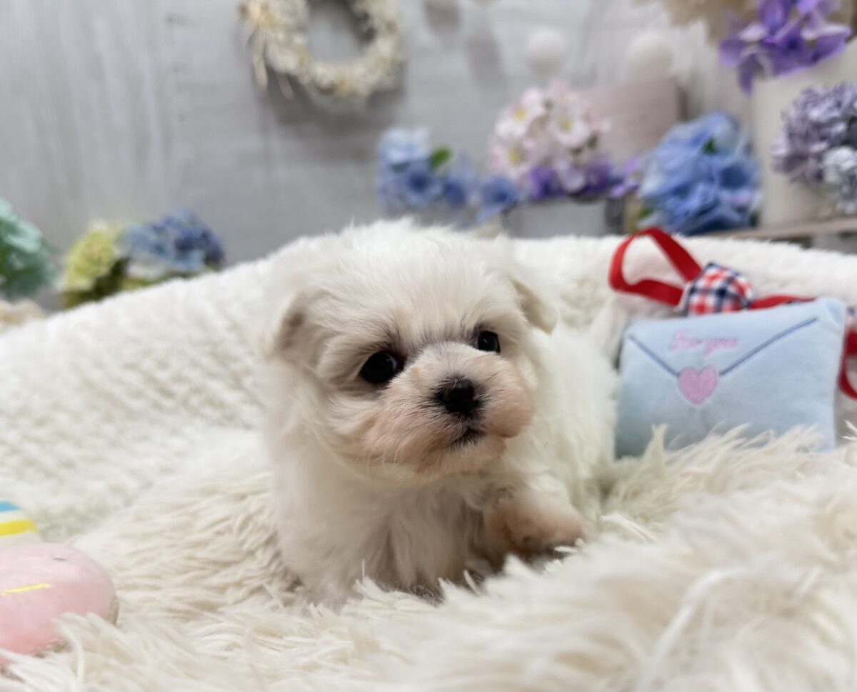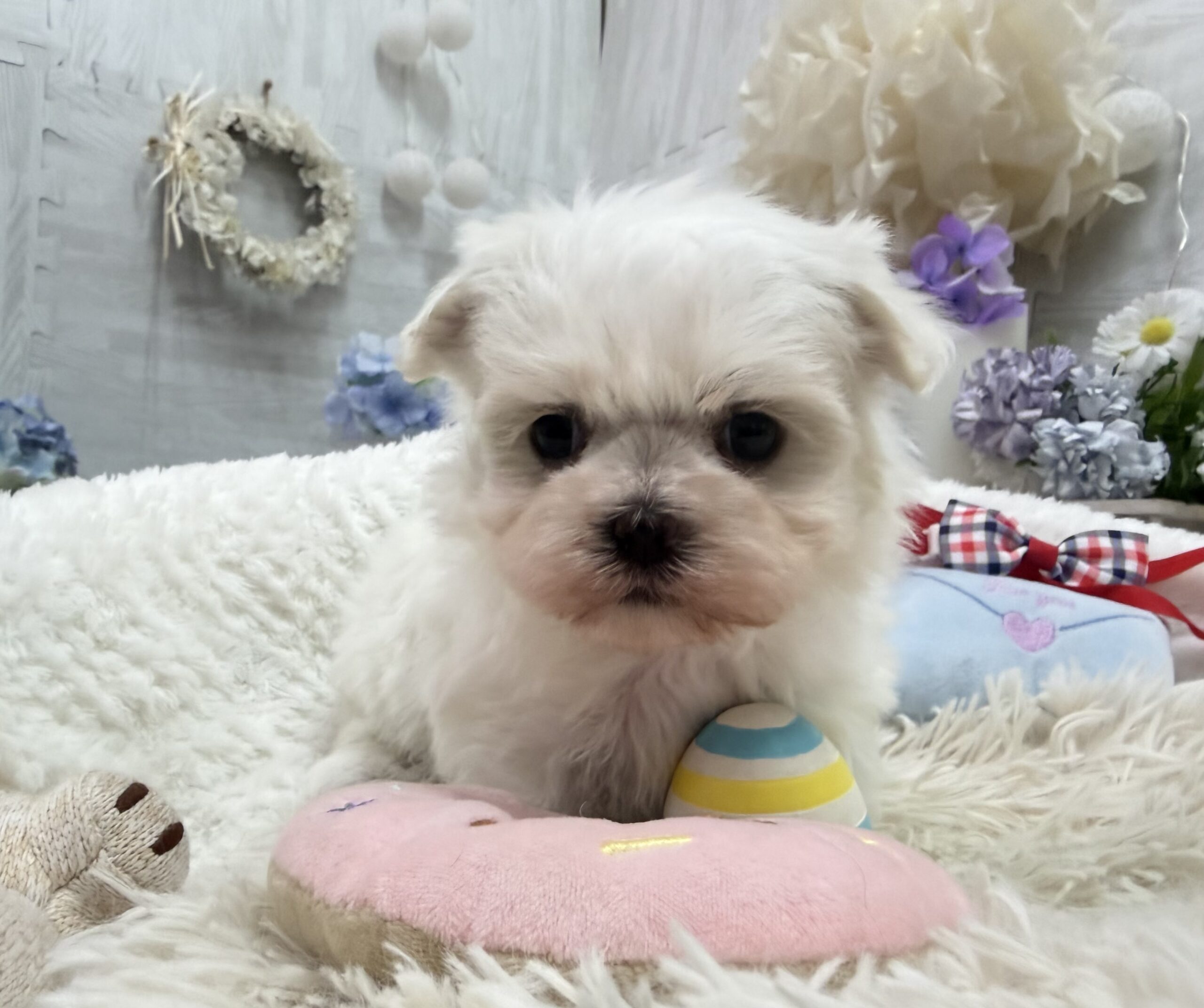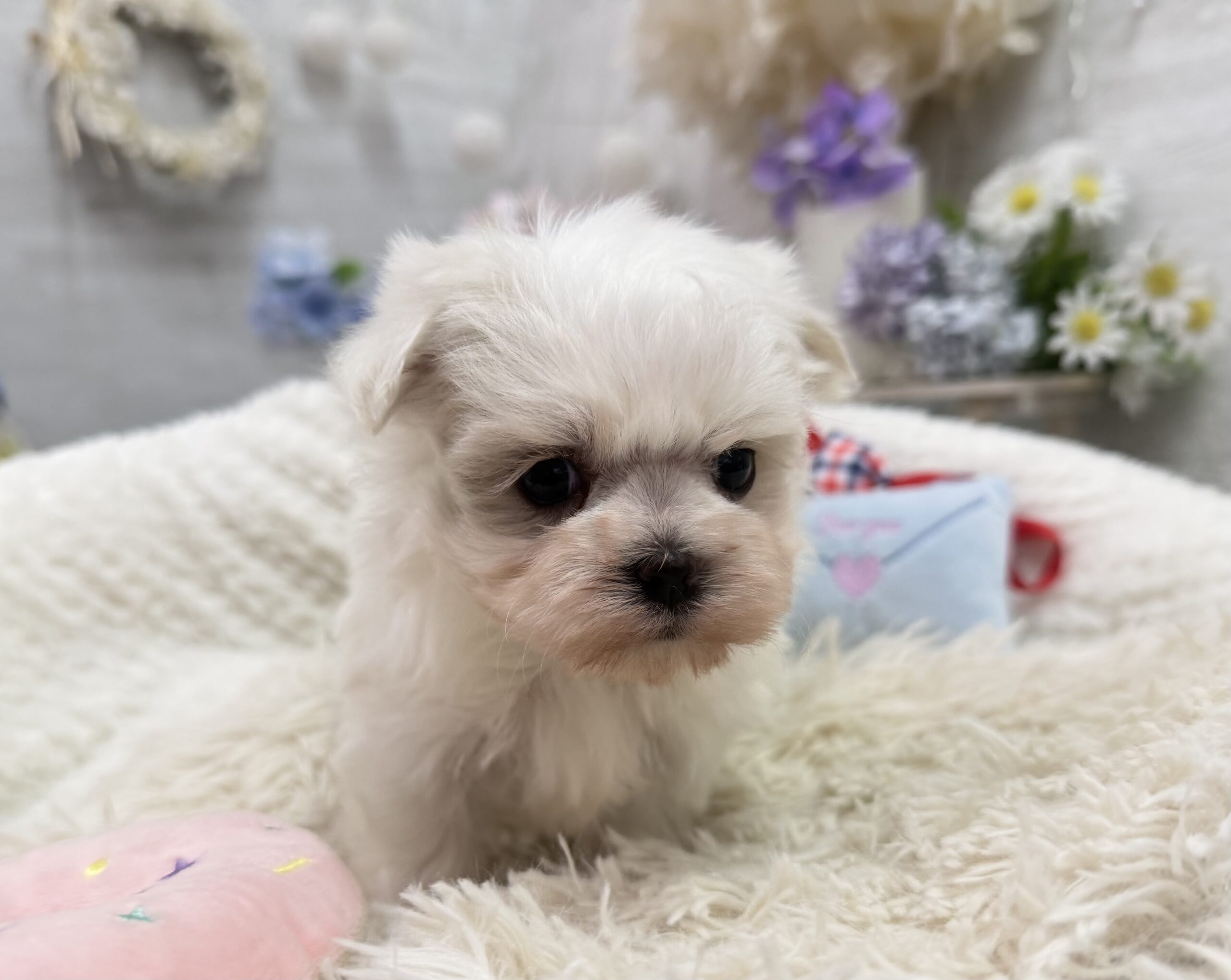 マルチーズ♀ マルチーズ , 犬アイコン無し , 成約済み マルチーズ 生体価格(税込)285,000円 状況未接種 生年月日2026年 3月 20日 性別女の子 カラーホワイト 血統書あり(JKC) 出生地京都府 その他 大きくてキュルキュルした瞳の女の子です🎵健康診断済み 泉門開きあり (4月20日現在)生まれた仔犬達はお母さんの愛情いっぱいもらいながら衛生管理整えた環境で育てています。<当犬舎のこだわり>健康で可愛い仔犬のブリーディングを心がけております。当犬舎では可愛くて健康な子犬を作出しながら、安心・親切・丁寧をもっとうとして飼い主様お1人お1人様に対応をさせて頂いております。<購入予約について>予約金をいただいた時点で正式な予約とし、他のお客様からのお問い合わせの受付をストップさせていただきます。予約金は、ワンちゃんの生体価格の30%となります。*お客様都合によるキャンセルの場合は返金できませんのでご了承をお願いいたします。▼保障制度▼お客様に販売した日より30日の生命保障をいたします。保障内容1.譲渡日から30日以内に当該保証対象犬が伝染病による死亡をした場合30日以内に当方が認めた同じクラスの同種の犬を無償で提供いたします。2.現金をお返しする場合、生体購入金額の50%となります。下記の場合は保障されません。1.飼育者の重大な過失に基づく死亡2.飼育者の故意による死亡3.伝染病予防ワクチンの接種を受けずに死亡4.獣医の治療を受けなかった場合の死亡5.飼育者以外からの保障請求6.事故による死亡・逃亡・及び盗難7.保障請求に関して虚偽の申告があった時8.死亡の場合は医師の死亡証明がない時※子犬の成長過程で生じた毛色の変化、歯の噛み合わせ、サイズ、陰睾丸など子犬の時点では不可能なため、クレーム、返品はお受けできませんのでご了承下さい。 お問い合わせ このページを印刷する