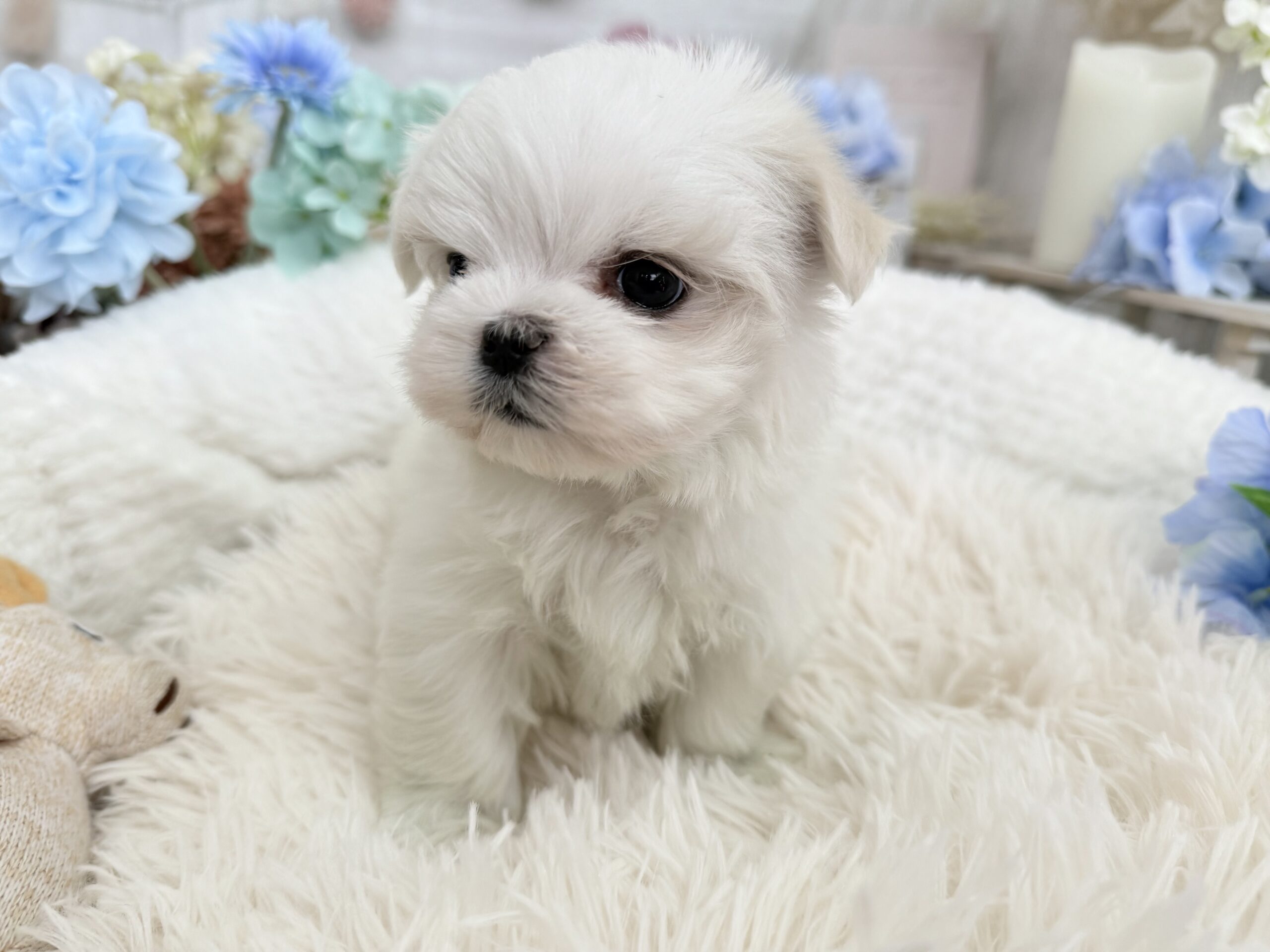 マルチーズ マルチーズ , 犬アイコン無し , 成約済み マルチーズ 生体価格(税込)380,000円 状況未接種 生年月日2026年 1月 17日 性別女の子 カラーホワイト 血統書あり(JKC) 出生地京都府 その他 お目目が大きく可愛い顔立ちの女の子です♫とっても人懐っこい性格です。健康診断済み 異常なし(2月16日現在)生まれた仔犬達はお母さんの愛情いっぱいもらいながら衛生管理整えた環境で育てています。<当犬舎のこだわり>健康で可愛い仔犬のブリーディングを心がけております。当犬舎では可愛くて健康な子犬を作出しながら、安心・親切・丁寧をもっとうとして飼い主様お1人お1人様に対応をさせて頂いております。<お問い合わせについて>当犬舎はブリーディング以外にも業務がございますので、早急にお返事ができない場合もございます。24時間以内にはお返事させていただきますのでご了承をお願いいたします。<購入予約について>予約金をいただいた時点で正式な予約とし、他のお客様からのお問い合わせの受付をストップさせていただきます。予約金は、ワンちゃんの生体価格の30%となります。*お客様都合によるキャンセルの場合は返金できませんのでご了承をお願いいたします。 お問い合わせ このページを印刷する