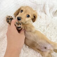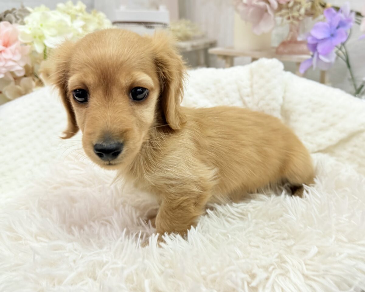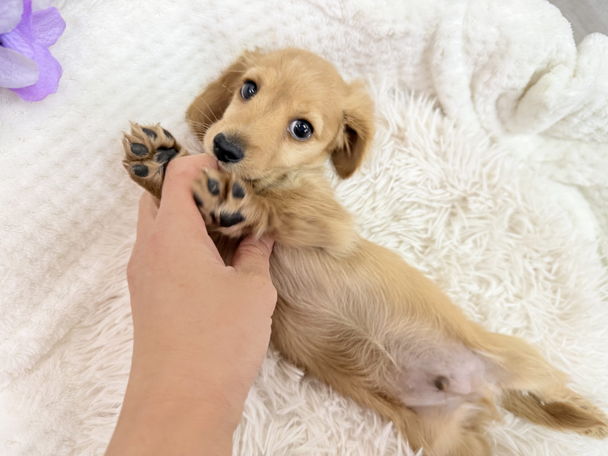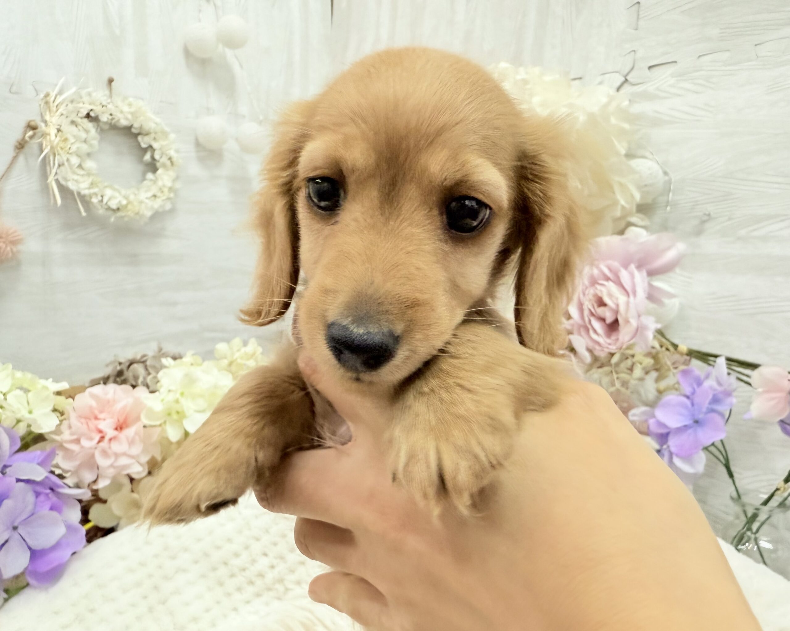ミニチュアダックスフンド ミニチュアダックスフンド , 犬アイコン無し ミニチュアダックスフンド 生体価格(税込)200,000円 状況未接種 生年月日2025年 12月 7日 性別男の子 カラーゴールド 血統書あり(JKC) 出生地京都府 その他 ★☆お値段お下げしました☆★ 245000円→200000円大きな瞳の可愛い男の子です♫とっても人懐っこい、甘えん坊な子です^ ^お父さん ミニチュアダックスフンド ロング 毛色:イエロー 進行性網膜萎縮症(PRA)クリアお母さん ミニチュアダックスフンド ロング 毛色:ブラック&タン 進行性網膜萎縮症(PRA)クリア健康診断済み 体重 約700g(1月8日)生まれた仔犬達はお母さんの愛情いっぱいもらいながら衛生管理整えた環境で育てています。<当犬舎のこだわり>健康で可愛い仔犬のブリーディングを心がけております。当犬舎では可愛くて健康な子犬を作出しながら、安心・親切・丁寧をもっとうとして飼い主様お1人お1人様に対応をさせて頂いております。<購入予約について>予約金をいただいた時点で正式な予約とし、他のお客様からのお問い合わせの受付をストップさせていただきます。予約金は、ワンちゃんの生体価格の30%となります。また、お預かりした予約金は内金として充当します。<ご予約後のキャンセルについて>子犬・子猫をご予約後、お客様都合で子犬・子猫購入をキャンセルされた場合には、予約金の返金は致しかねますので、ご注意ください。<引渡し方法>店頭での手渡しこの場合、送料はかかりません。お迎えにかかる総額費用の内訳は、生体価格+ワクチン代(子犬6,600円、子猫4,400円)+子犬(子猫)フードとなります。店頭での見学後、後日お届けこの場合、お届け場所に応じた出張料が別途必要です。お迎えにかかる総額費用の内訳は、生体価格+ワクチン代+子犬(子猫)フード+出張料となります。※お届けでお迎えいただく場合には、お届けする前に必ず一度、店頭での現物確認、及び対面説明を受けていただく必要があります。<引き渡し時期について>生後60日前後を基本としておりますが、子犬・子猫の健康状態により前後いたします。▼保障制度▼お客様に販売した日より30日の生命保障をいたします。保障内容1.譲渡日から30日以内に当該保証対象犬が伝染病による死亡をした場合30日以内に当方が認めた同じクラスの同種の犬を無償で提供いたします。2.現金をお返しする場合、生体購入金額の50%となります。下記の場合は保障されません。1.飼育者の重大な過失に基づく死亡2.飼育者の故意による死亡3.伝染病予防ワクチンの接種を受けずに死亡4.獣医の治療を受けなかった場合の死亡5.飼育者以外からの保障請求6.事故による死亡・逃亡・及び盗難7.保障請求に関して虚偽の申告があった時8.死亡の場合は医師の死亡証明がない時※子犬の成長過程で生じた毛色の変化、歯の噛み合わせ、サイズ、陰睾丸など子犬の時点では不可能なため、クレーム、返品はお受けできませんのでご了承下さい。 お問い合わせ このページを印刷する
