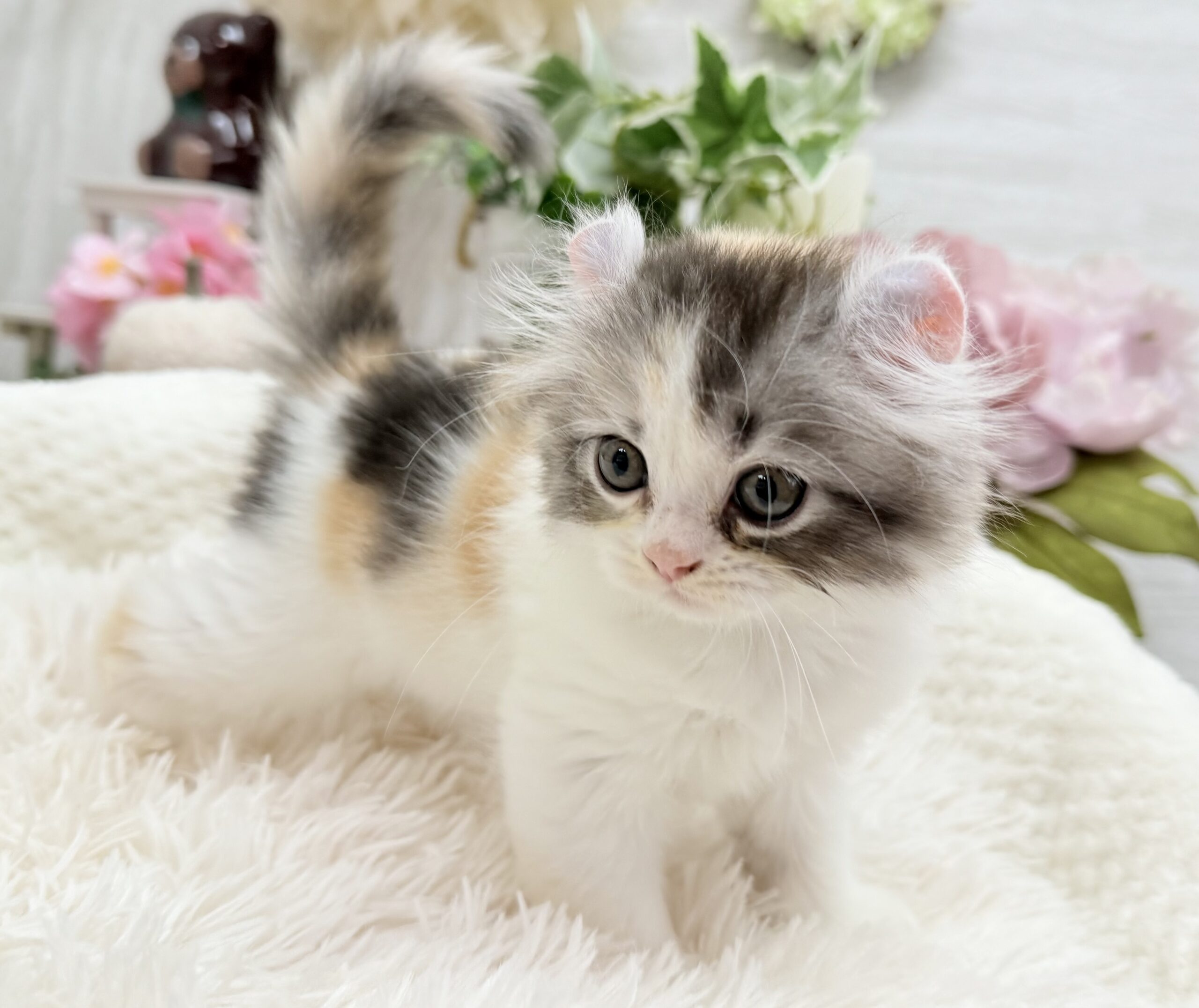 アメリカンカール アメリカンカール , ミヌエット , 猫アイコン無し , 成約済み アメリカンカール 生体価格(税込)210,000円 状況未接種 生年月日2025年 8月 14日 性別女の子 カラーダイリュートキャリコ 血統書あり(JPCC) 出生地京都府 その他 たくさんのネコちゃんの中から,この子をご覧いただきありがとうございます。とってもゴージャスで、華やかな子になりそうです♡お耳もしっかりカールしています。2匹姉妹仲良く成長しています^ ^健康診断済み 異常無し(9月5日時点) 生まれた仔犬達はお母さんの愛情いっぱいもらいながら衛生管理整えた環境で育てています。<当犬舎のこだわり>健康で可愛い仔犬のブリーディングを心がけております。当犬舎では可愛くて健康な子犬を作出しながら、安心・親切・丁寧をもっとうとして飼い主様お1人お1人様に対応をさせて頂いております。<お問い合わせについて>当犬舎はブリーディング以外にも業務がございますので、早急にお返事ができない場合もございます。24時間以内にはお返事させていただきますのでご了承をお願いいたします。<購入予約について>予約金をいただいた時点で正式な予約とし、他のお客様からのお問い合わせの受付をストップさせていただきます。予約金は、ワンちゃんの生体価格の30%となります。*お客様都合によるキャンセルの場合は返金できませんのでご了承をお願いいたします。 お問い合わせ このページを印刷する