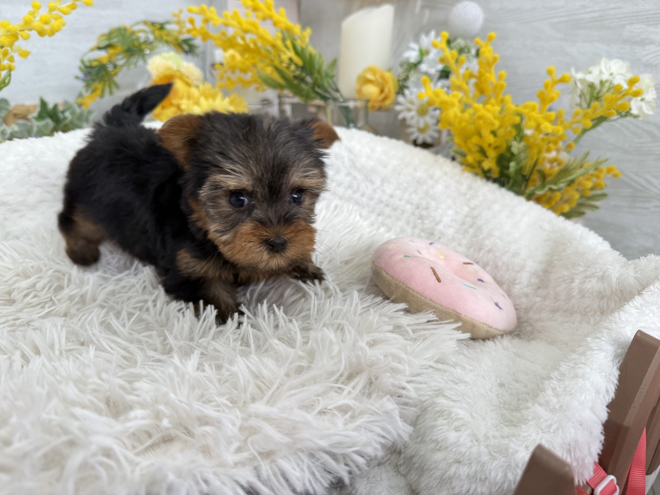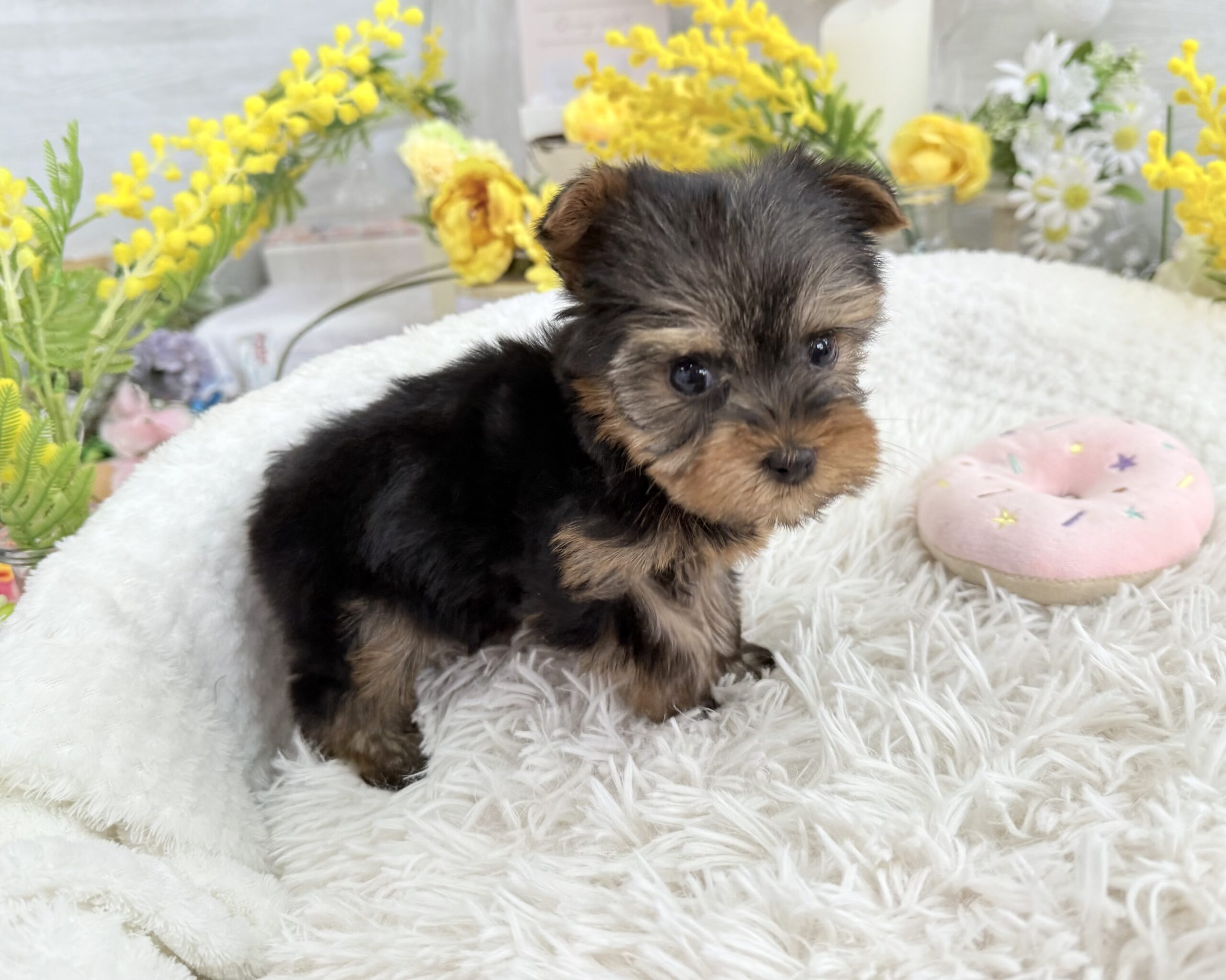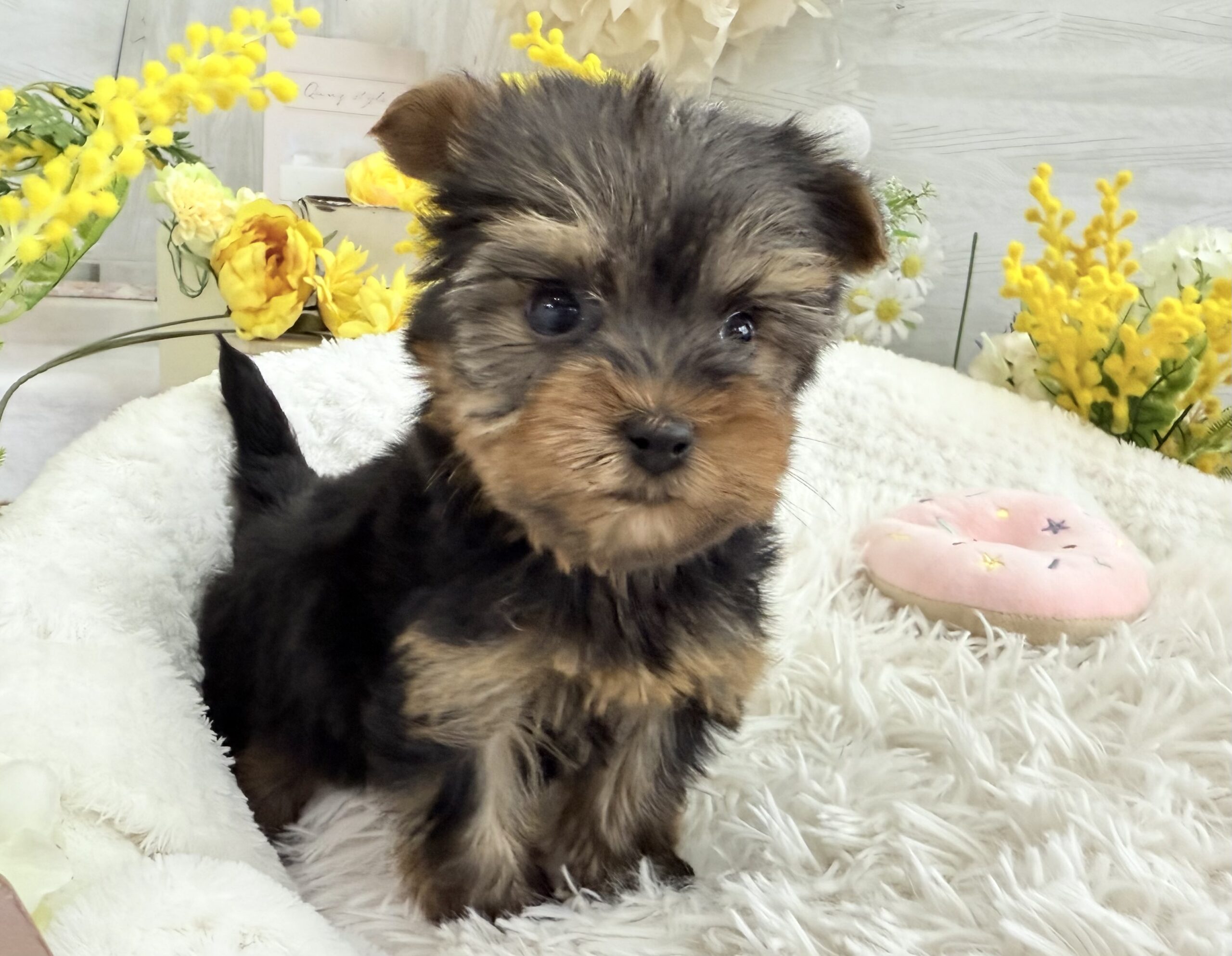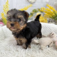 ヨークシャー・テリア ヨークシャーテリア , 犬アイコン無し , 商談中 ヨークシャー・テリア 生体価格(税込)230,000円 状況未接種 生年月日2026年 1月 15日 性別女の子 カラースチールブルー&タン 血統書あり(JKC) 出生地京都府 その他 キラキラお目目のキュートな女の子です♫4頭兄妹で元気にすくすく成長しています。健康診断済み 異常なし(2月14日現在)生まれた仔犬達はお母さんの愛情いっぱいもらいながら衛生管理整えた環境で育てています。<当犬舎のこだわり>健康で可愛い仔犬のブリーディングを心がけております。当犬舎では可愛くて健康な子犬を作出しながら、安心・親切・丁寧をもっとうとして飼い主様お1人お1人様に対応をさせて頂いております。<購入予約について>予約金をいただいた時点で正式な予約とし、他のお客様からのお問い合わせの受付をストップさせていただきます。予約金は、ワンちゃんの生体価格の30%となります。また、お預かりした予約金は内金として充当します。<ご予約後のキャンセルについて>子犬・子猫をご予約後、お客様都合で子犬・子猫購入をキャンセルされた場合には、予約金の返金は致しかねますので、ご注意ください。<引渡し方法>店頭での手渡しこの場合、送料はかかりません。お迎えにかかる総額費用の内訳は、生体価格+ワクチン代(子犬6,600円、子猫4,400円)+子犬(子猫)フードとなります。店頭での見学後、後日お届けこの場合、お届け場所に応じた出張料が別途必要です。お迎えにかかる総額費用の内訳は、生体価格+ワクチン代+子犬(子猫)フード+出張料となります。※お届けでお迎えいただく場合には、お届けする前に必ず一度、店頭での現物確認、及び対面説明を受けていただく必要があります。<引き渡し時期について>生後60日前後を基本としておりますが、子犬・子猫の健康状態により前後いたします。▼保障制度▼お客様に販売した日より30日の生命保障をいたします。保障内容1.譲渡日から30日以内に当該保証対象犬が伝染病による死亡をした場合30日以内に当方が認めた同じクラスの同種の犬を無償で提供いたします。2.現金をお返しする場合、生体購入金額の50%となります。下記の場合は保障されません。1.飼育者の重大な過失に基づく死亡2.飼育者の故意による死亡3.伝染病予防ワクチンの接種を受けずに死亡4.獣医の治療を受けなかった場合の死亡5.飼育者以外からの保障請求6.事故による死亡・逃亡・及び盗難7.保障請求に関して虚偽の申告があった時8.死亡の場合は医師の死亡証明がない時※子犬の成長過程で生じた毛色の変化、歯の噛み合わせ、サイズ、陰睾丸など子犬の時点では不可能なため、クレーム、返品はお受けできませんのでご了承下さい。 お問い合わせ このページを印刷する