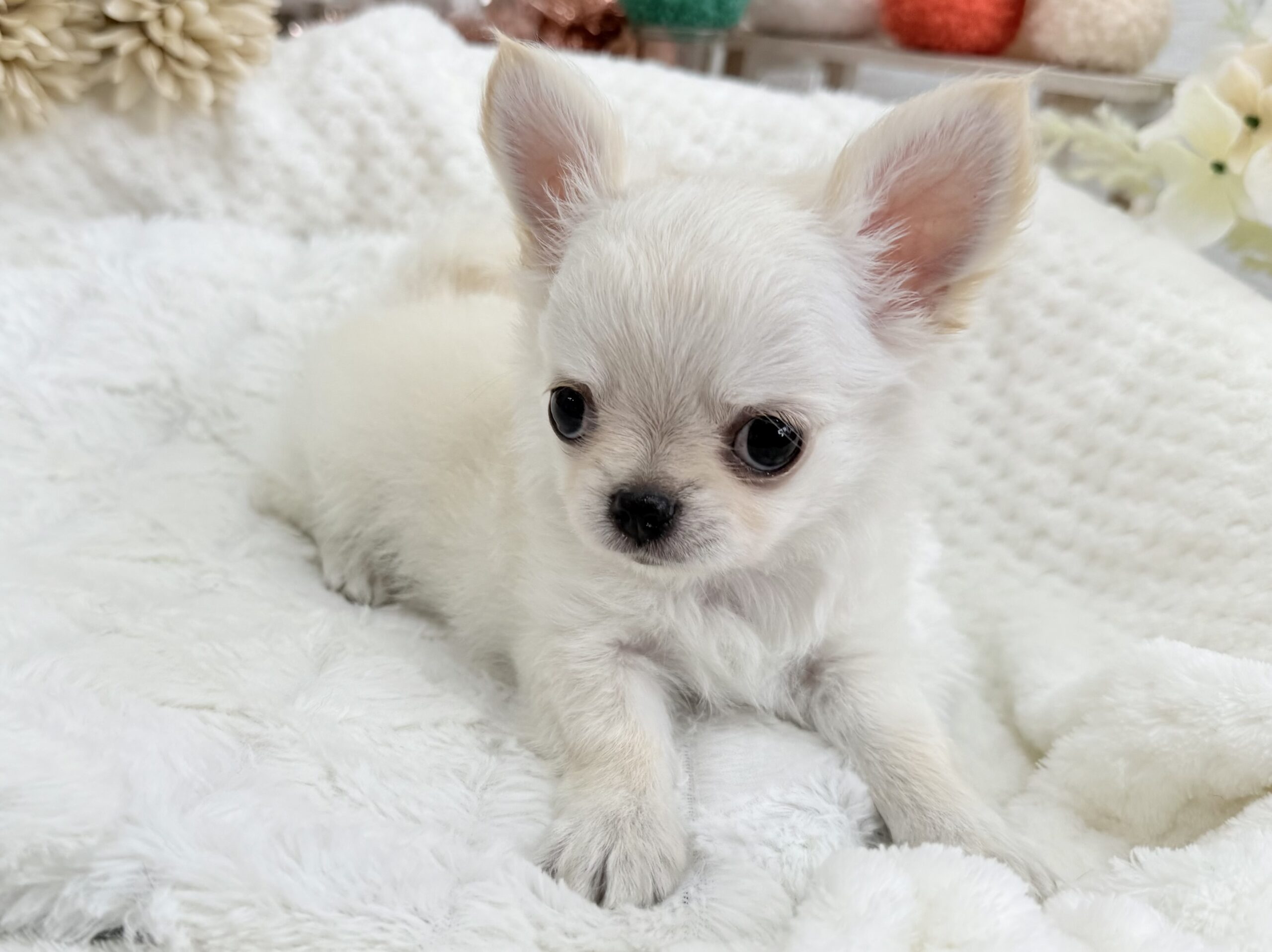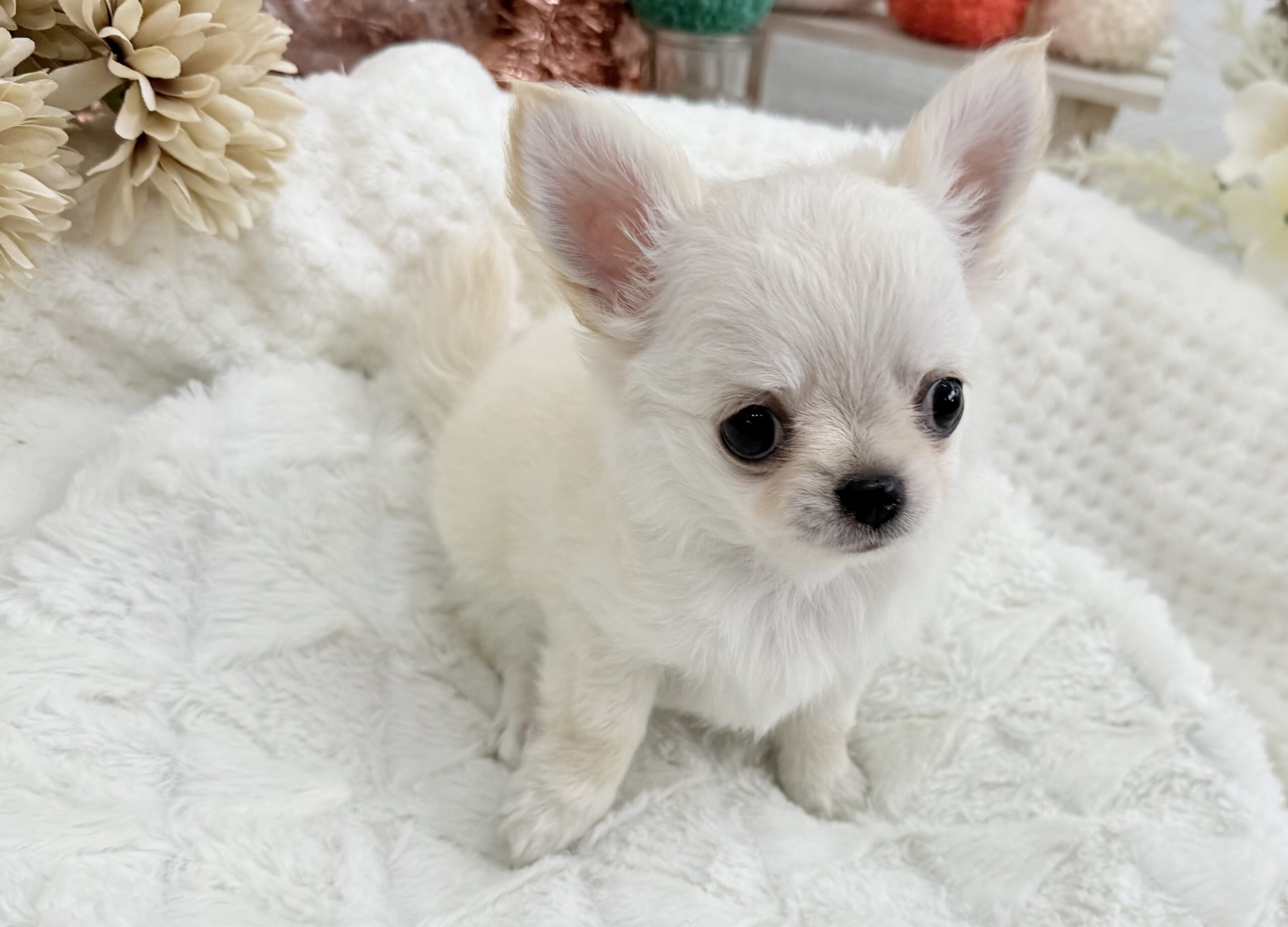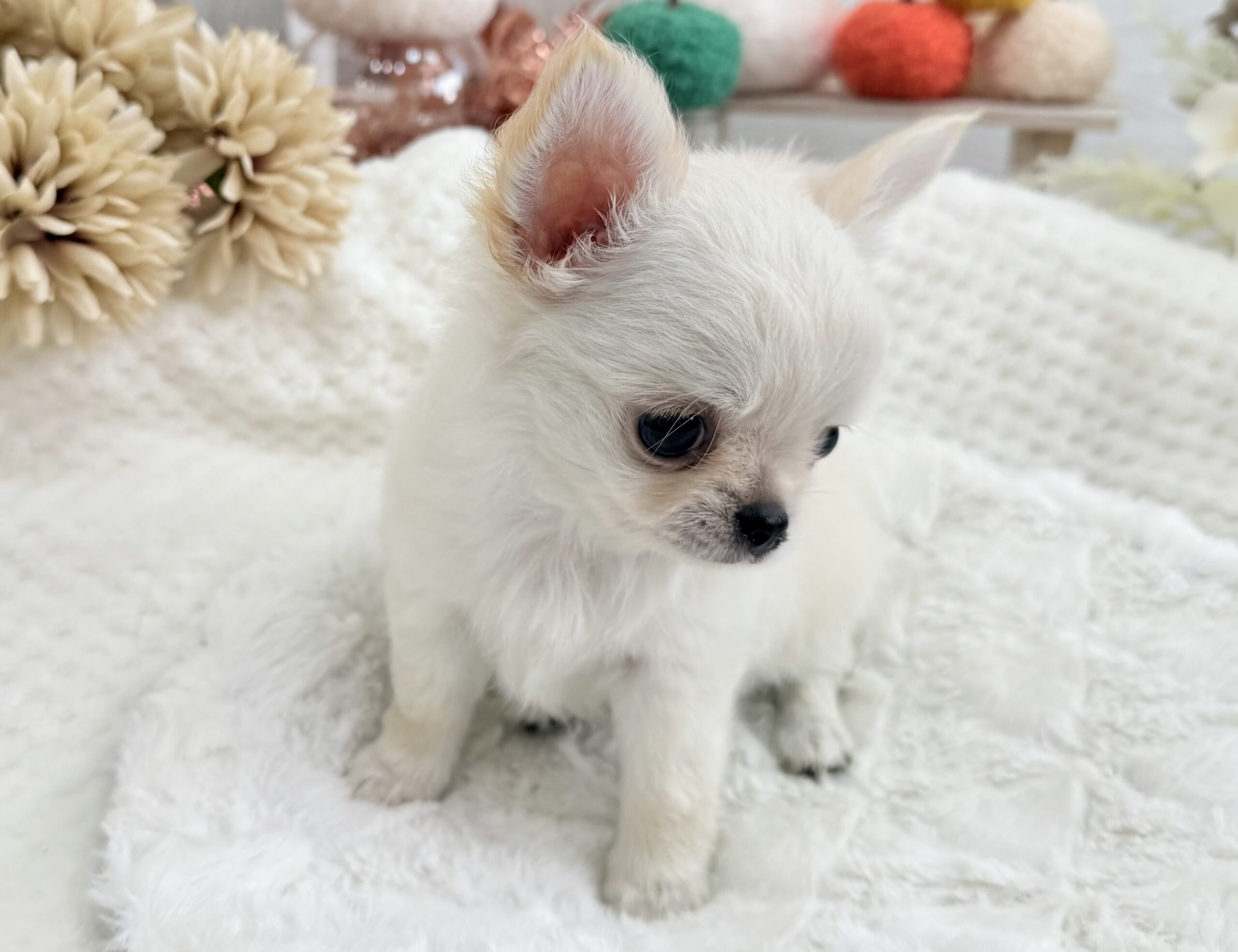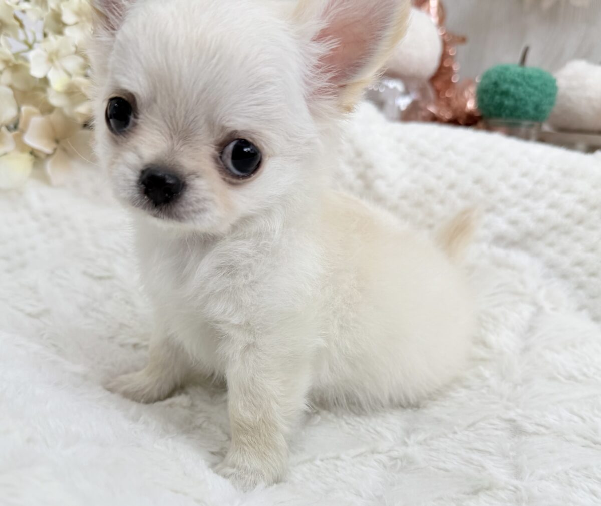 ロングコートチワワ チワワ , 犬アイコン無し チワワ(ロングコート) 生体価格(税込)260,000円 状況未接種 生年月日2025年 8月 25日 性別男の子 カラークリーム 血統書あり(JKC) 出生地京都府 その他 とーっても可愛く成長しています^ ^まん丸フェイスで鼻ペチャの可愛い男の子♫超甘えん坊の癒し系です^ ^健康診断結果 泉門あり(9月30日現在)生まれた仔犬達はお母さんの愛情いっぱいもらいながら衛生管理整えた環境で育てています。<当犬舎のこだわり>健康で可愛い仔犬のブリーディングを心がけております。当犬舎では可愛くて健康な子犬を作出しながら、安心・親切・丁寧をもっとうとして飼い主様お1人お1人様に対応をさせて頂いております。<お問い合わせについて>当犬舎はブリーディング以外にも業務がございますので、早急にお返事ができない場合もございます。24時間以内にはお返事させていただきますのでご了承をお願いいたします。<購入予約について>予約金をいただいた時点で正式な予約とし、他のお客様からのお問い合わせの受付をストップさせていただきます。予約金は、ワンちゃんの生体価格の30%となります。*お客様都合によるキャンセルの場合は返金できませんのでご了承をお願いいたします。 お問い合わせ このページを印刷する